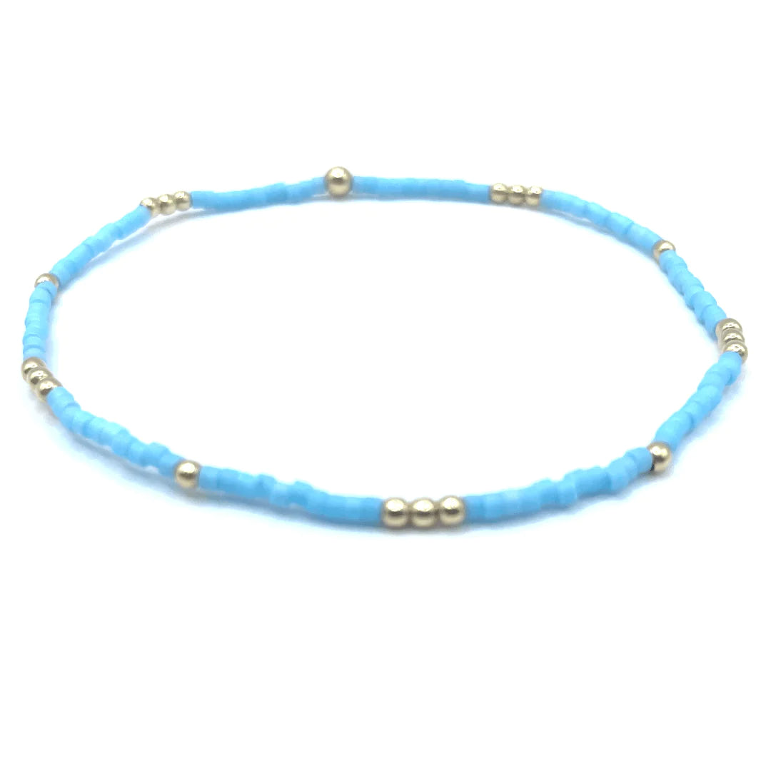 Elevate your jewelry collection with our erin gray 2mm Newport True Turquoise Bracelet. The 14k gold-filled beads and carefully selected natural colors make it simple and sophisticated. Stack and gift, this stretch bracelet comes in multiple color patterns and sizes. Expertly crafted for the perfect fit.