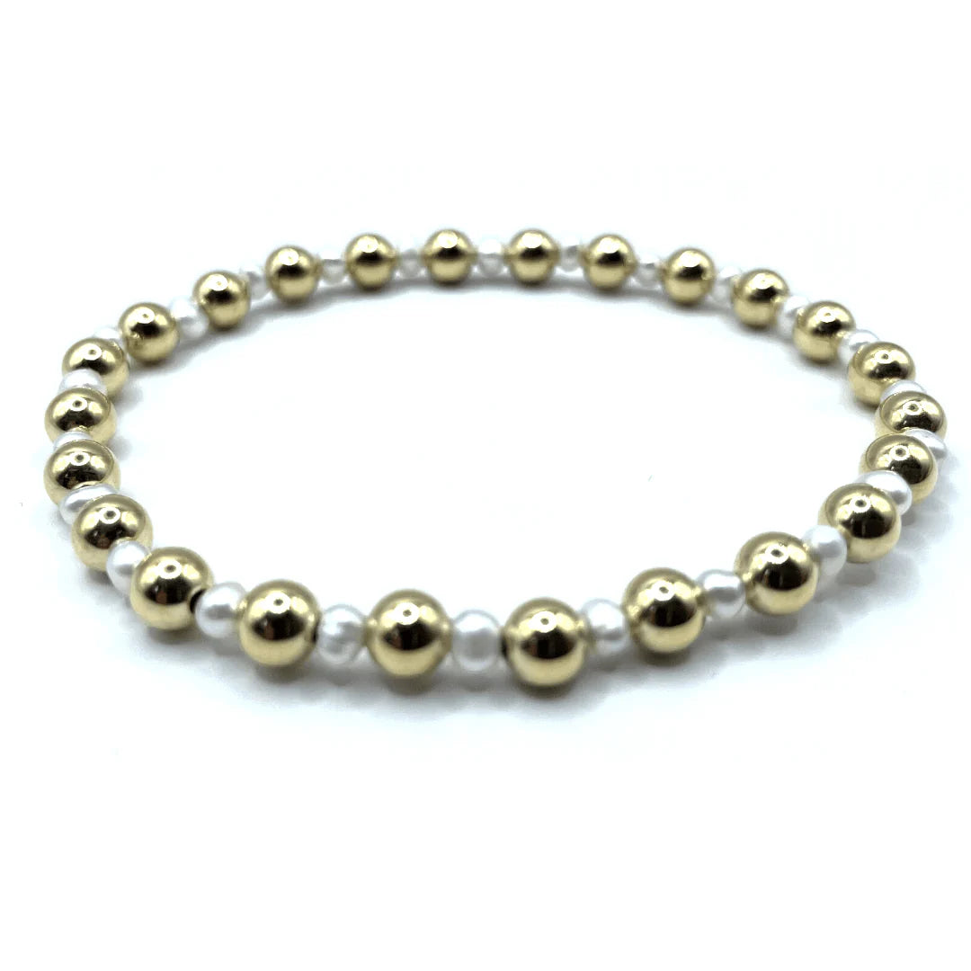 Elevate your style with our 5mm Montauk 14K Gold/Pearl Waterproof Bracelet. Made with 14k gold filled beads and fresh water pearls, this stretch bracelet adds a touch of elegance to any outfit. Designed to be worn alone or stacked with other pieces, it's a versatile addition to your jewelry collection. Part of our Erin Gray Waterproof Collection, it's available in a 6.5" length.