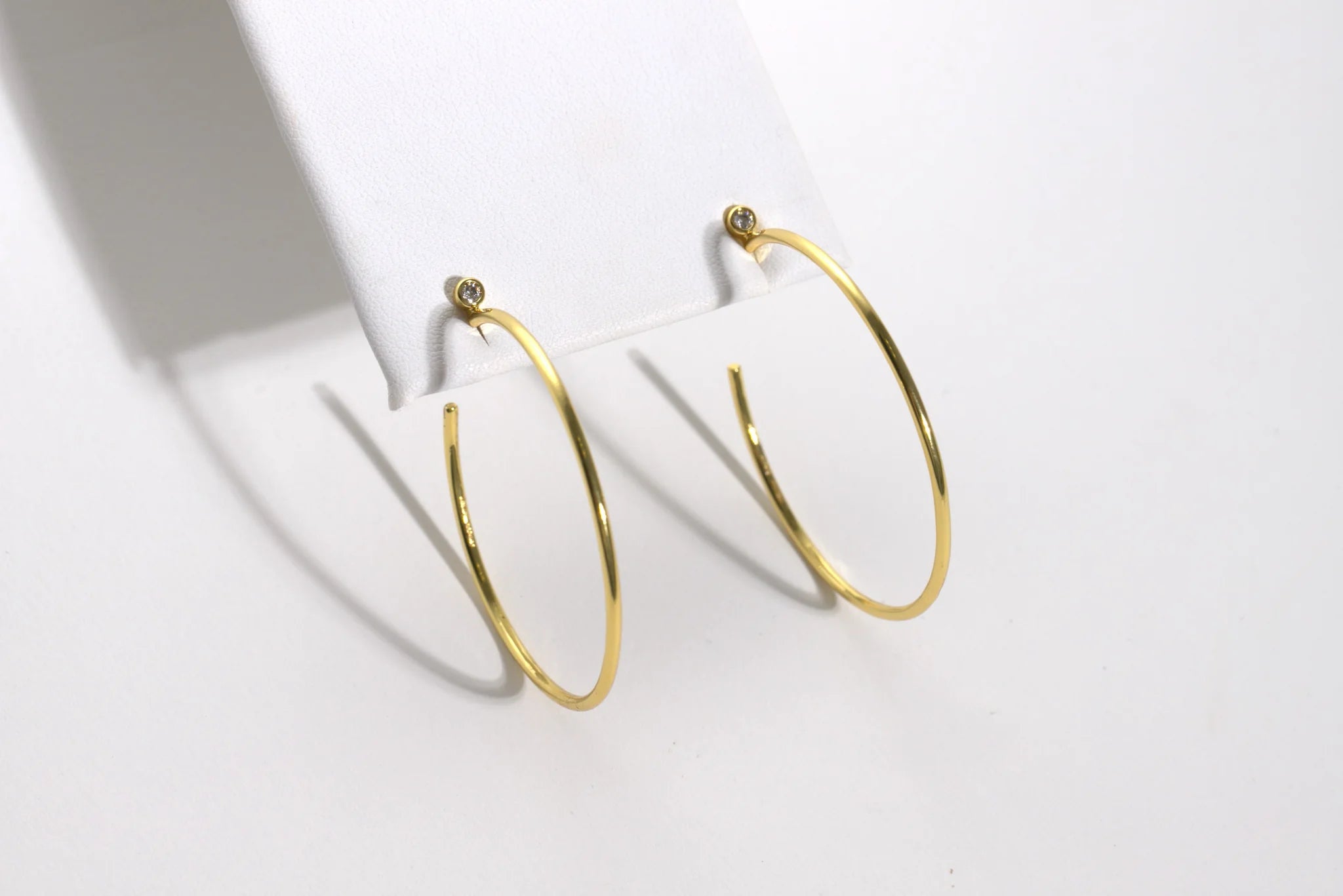 Elevate your accessory game with the Allsion Avery Brooklyn Hoops. These luxurious hoops feature 18K gold plated sterling silver and a single diamond cz stone for a touch of elegance. Perfect for adding sophistication to any outfit.