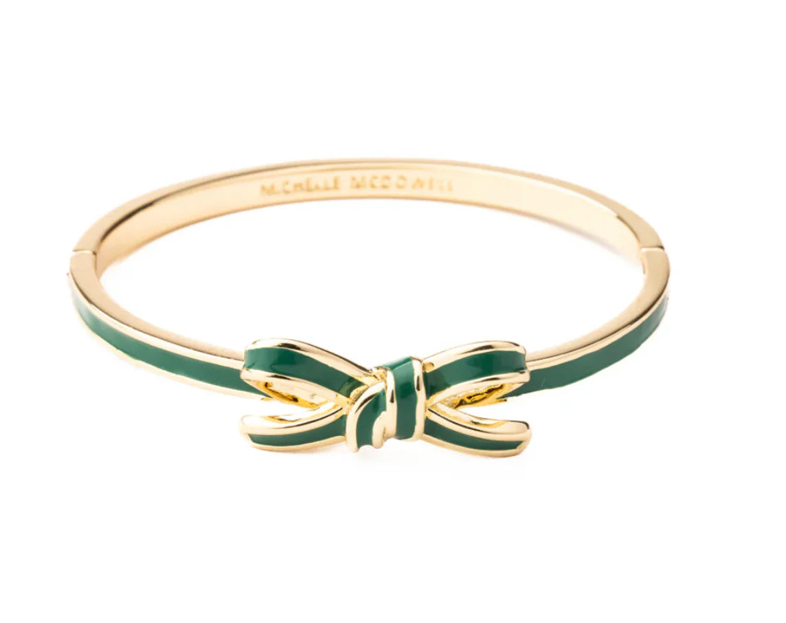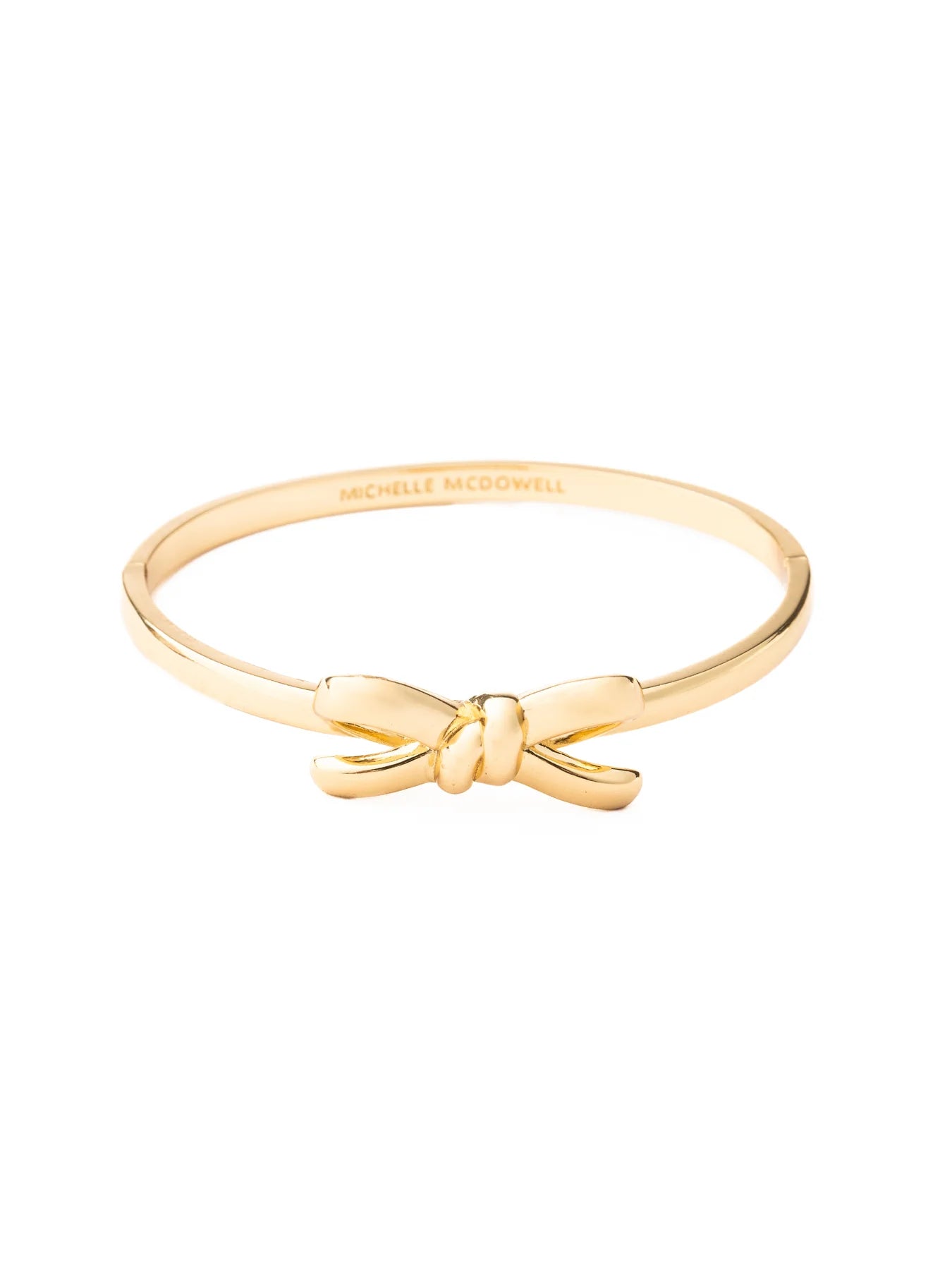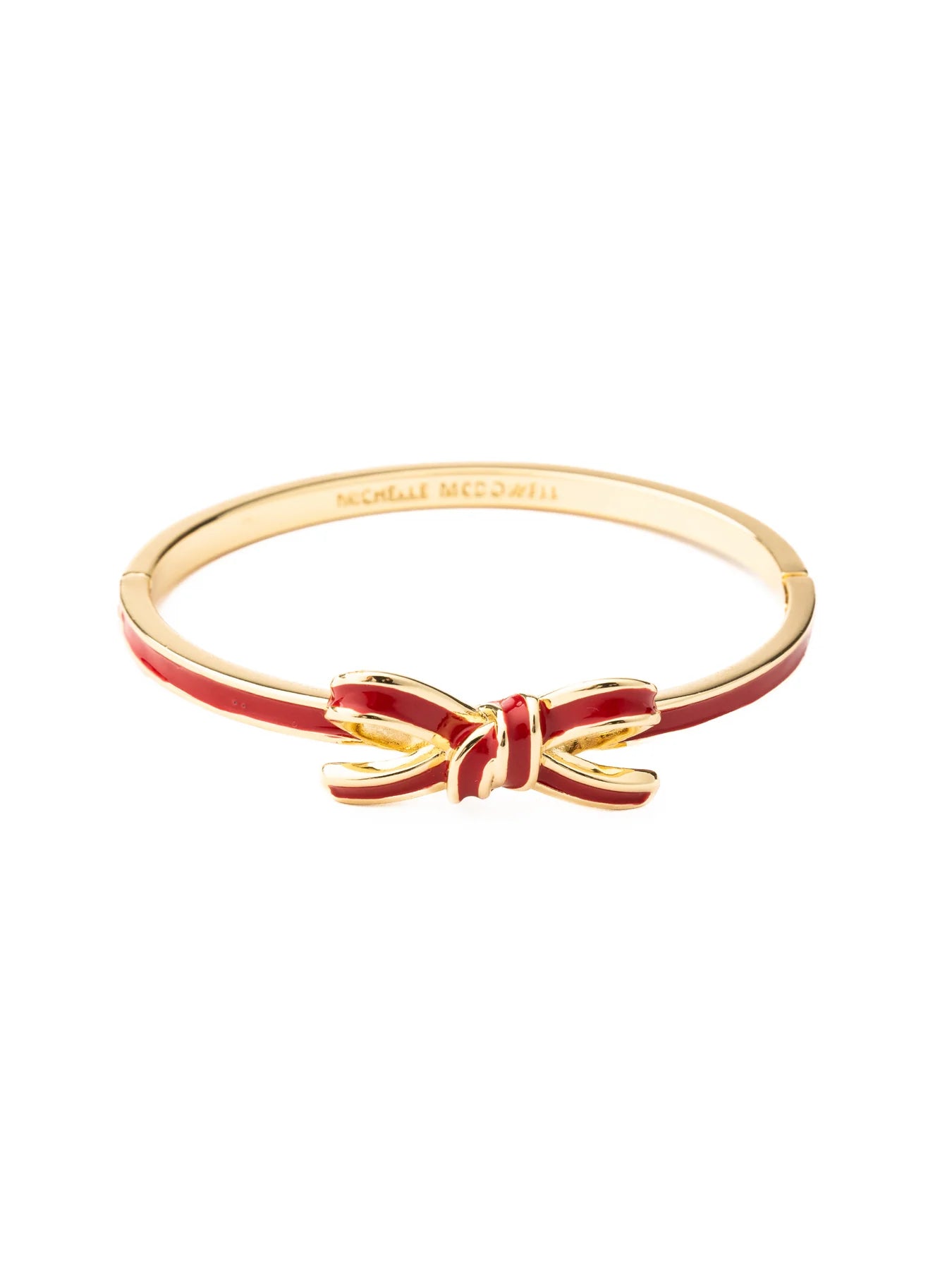 Add a touch of luxury and playfulness to your outfit with the Bangle Luxe Bow. This charming bangle features a stylish bow design, sure to catch the eye of others. Elevate your style and make a statement with this uniquely crafted accessory.