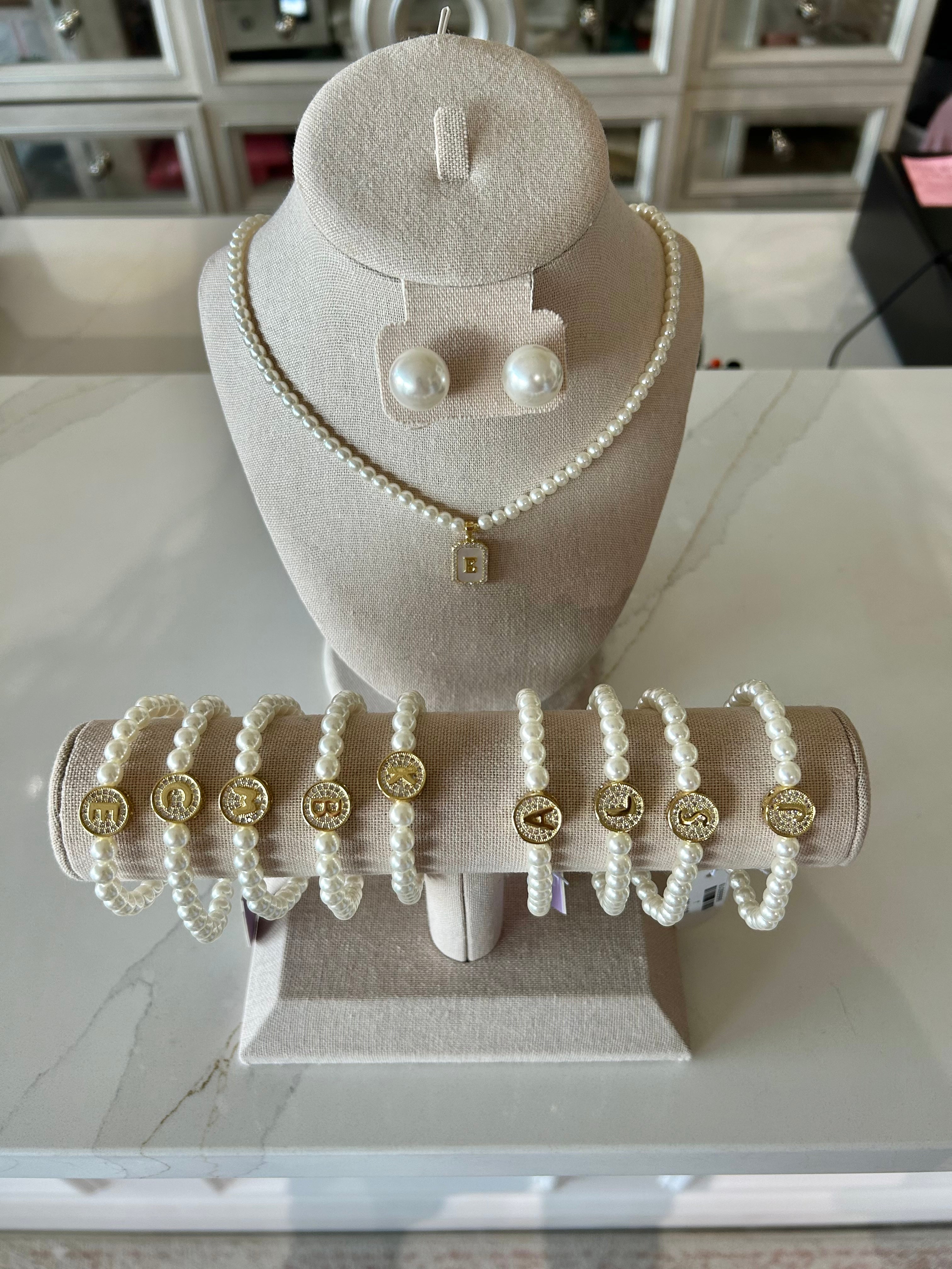 Add a meaningful touch to your style with our "Pearl Initial Charm Stretch Bracelet" — where timeless beauty meets personal flair.