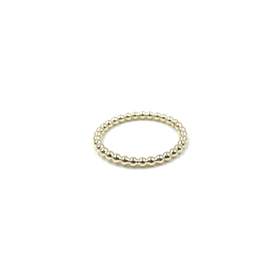 Add a touch of elegance to your accessories with erin gray's Resort Collection Gold Small Round Stone Ring. Made with 14k gold filled material, this sleek and slender ring features a small and rounded stone-like appearance. Its waterproof design makes it perfect for any occasion, whether you're stacking or wearing it alone.