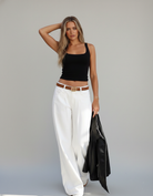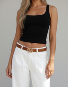 Elevate your wardrobe with the Stitched Clean Belt with Interlocking Buckle, a sleek and versatile accessory designed for modern style. Featuring precise stitching and a polished interlocking buckle, this belt combines durability with refined elegance, making it perfect for cinching dresses, layering over coats, or adding a sophisticated touch to jeans and trousers. Its clean design and adjustable fit ensure effortless style for any occasion.