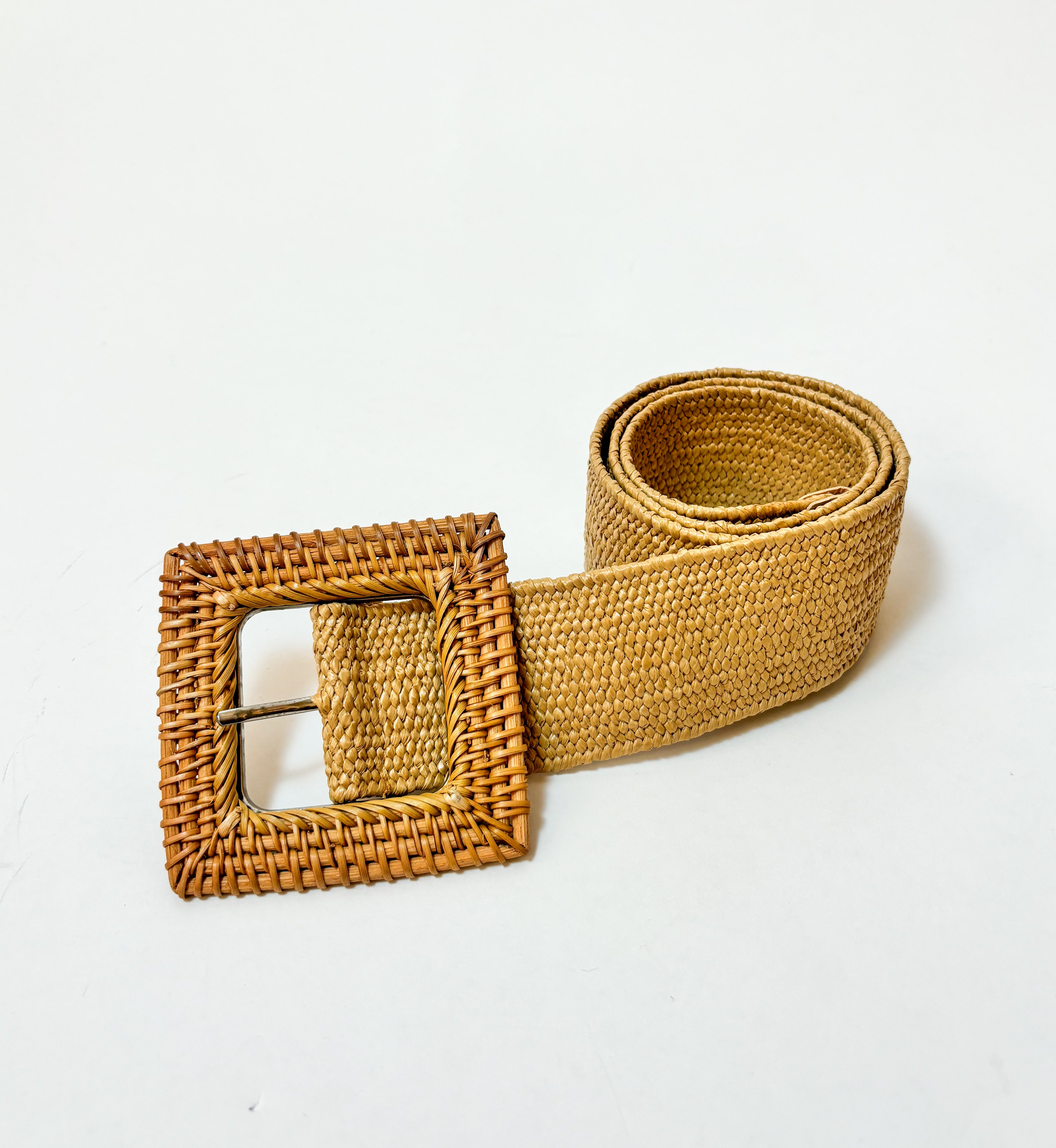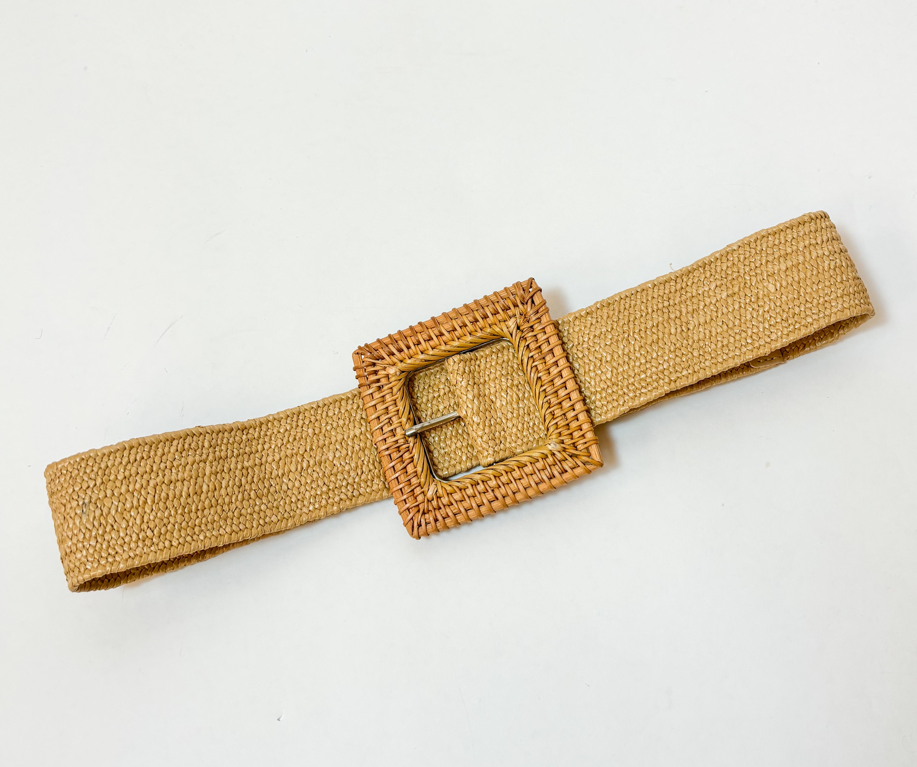 Square Rattan Straw Buckle Belt