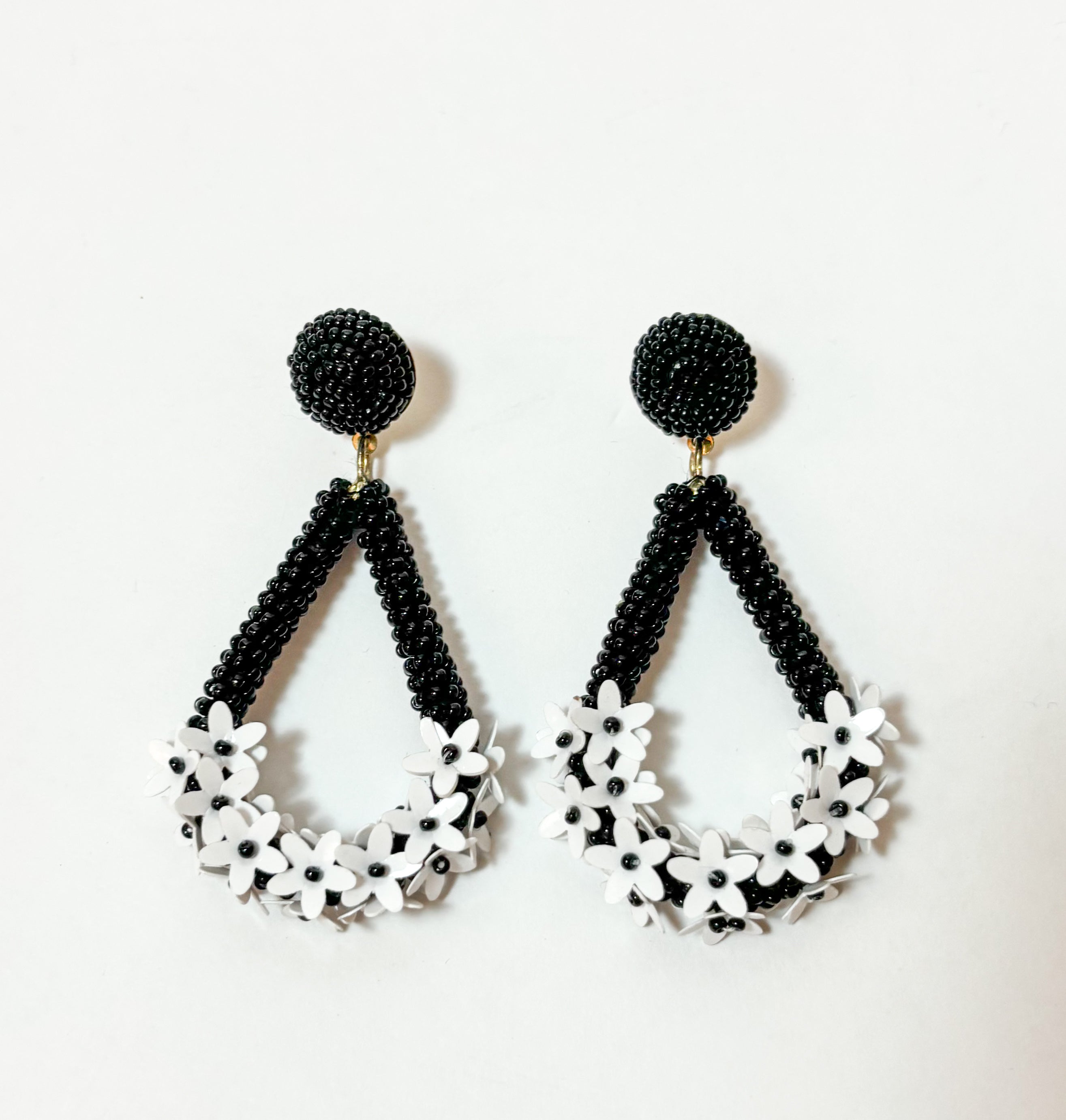 Flower Studed Teardrop Earrings