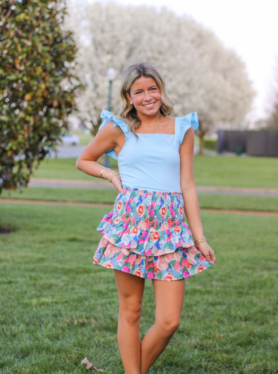 Add a touch of elegance to your wardrobe with our Sky Flutter Bodysuit. This baby blue bodysuit features ruffle flutter short sleeves, perfect for any occasion. Made with high-quality fabric and designed for your comfort and style.