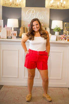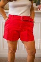 Step up your summer style with our Pleated Trouser Short in vibrant Geranium. These shorts feature a flattering pleated design that adds dimension to your look. With a comfortable fit and unique color, these shorts will make a bold statement and be your go-to for warmer days.