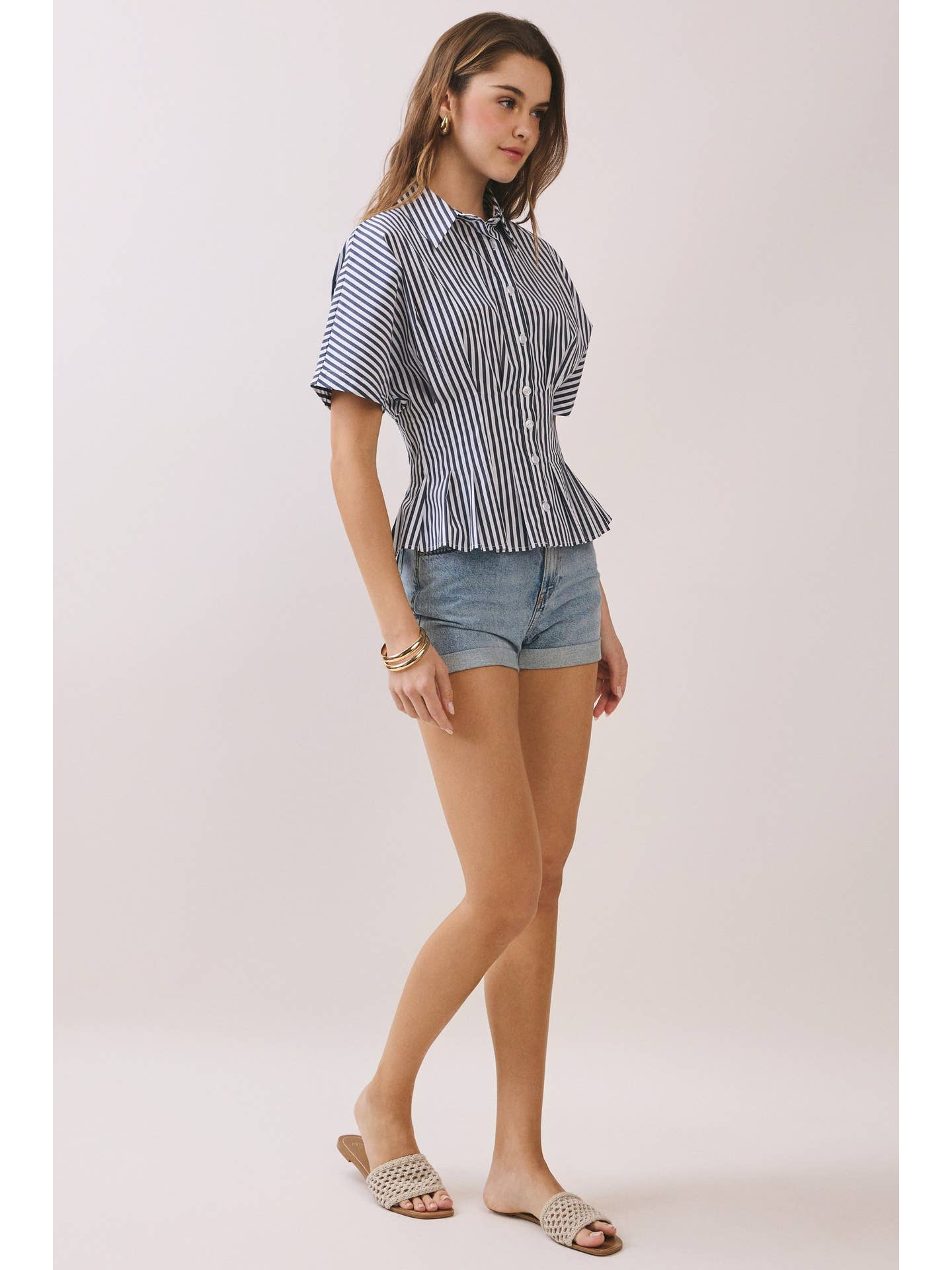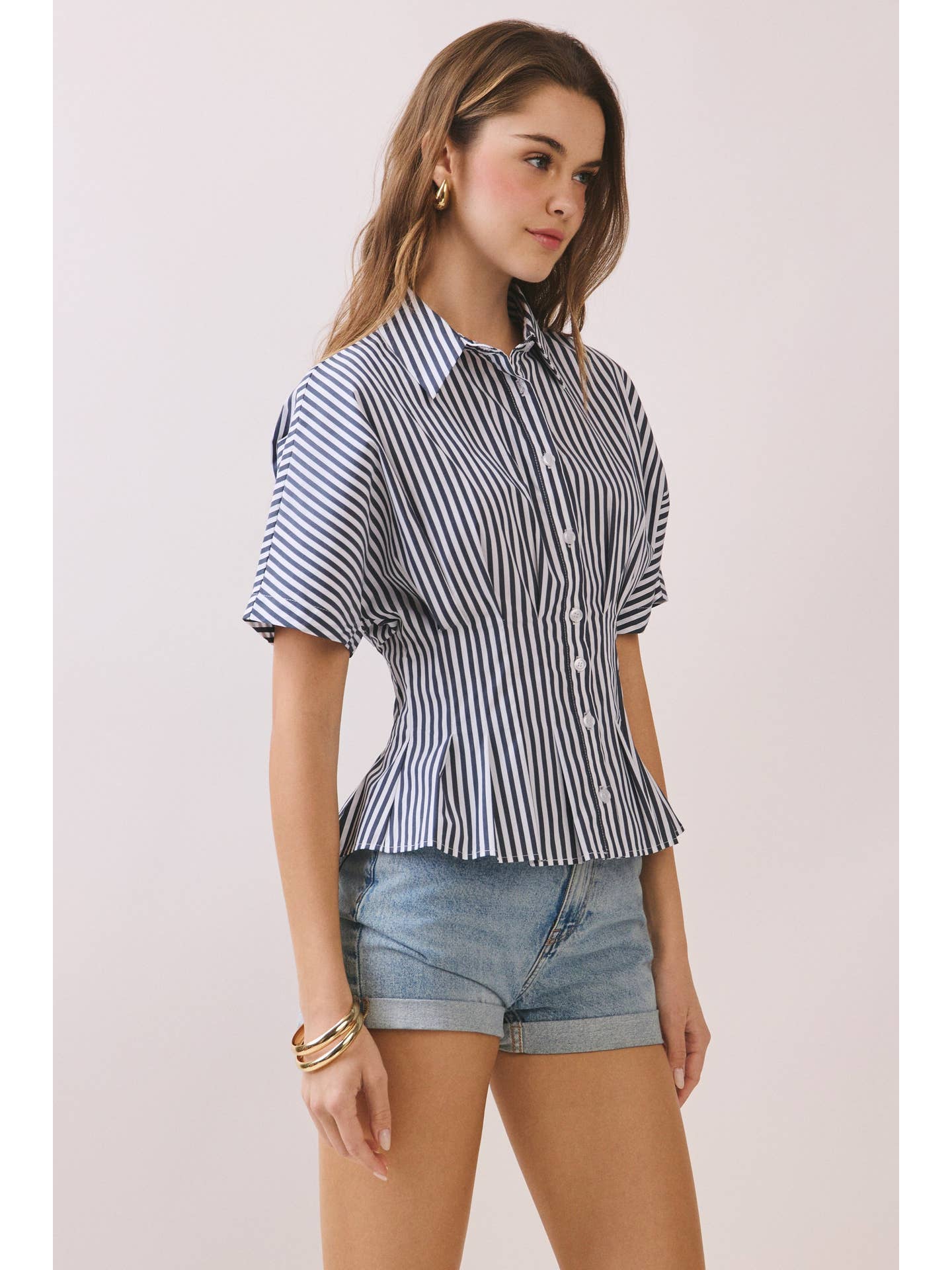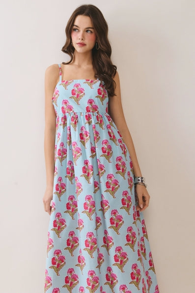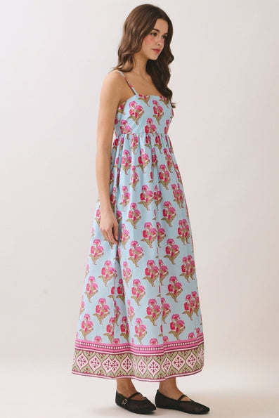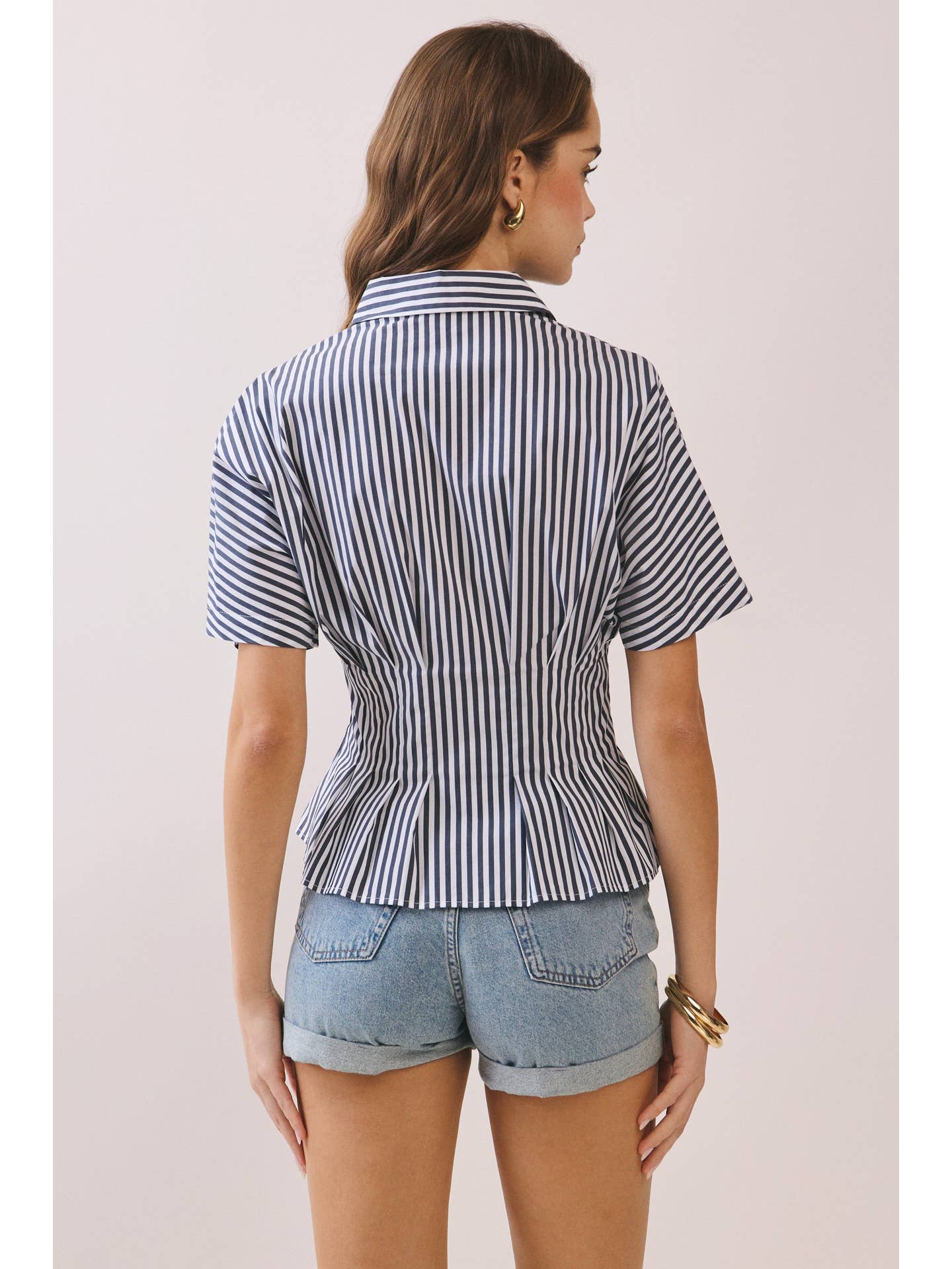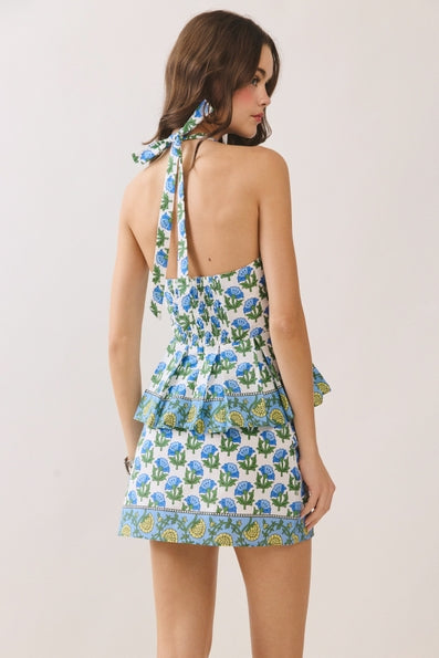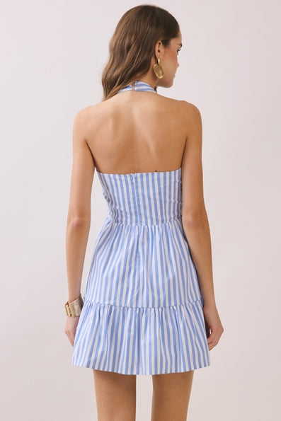 Striped Fitted Bodice Deep V Neck Halter Dress