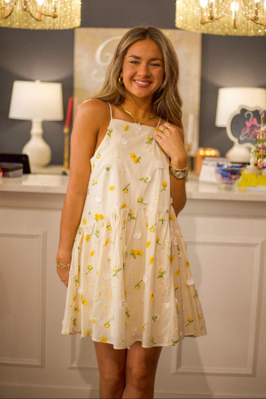 Introducing Buttercups Mini, the perfect dress for your flirty and fun side! Designed by By Together, this sleeveless dress features vibrant yellow flowers that will make you stand out in any crowd. Embrace your playful side with Buttercups Mini!