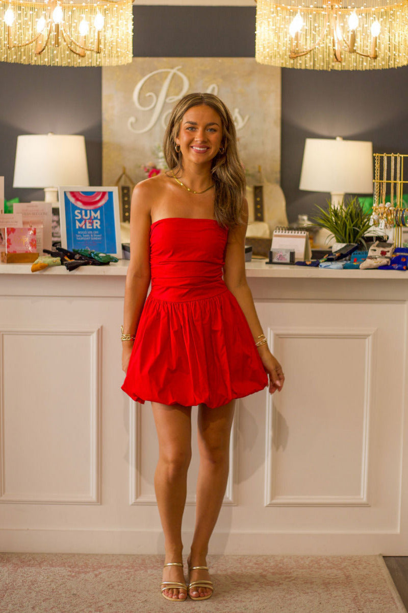 Get ready to "pop" in this playful Cotton Bubble Hem Mini Dress! Made with soft, breathable cotton, this dress is perfect for any occasion. The bubble hem adds a unique touch that will have you standing out in style. Don't be "deflated" by boring dresses - choose this one for a fun and flirty look!