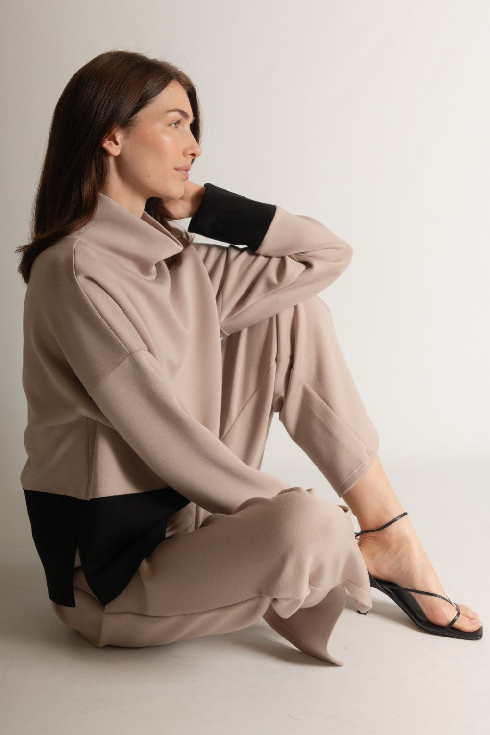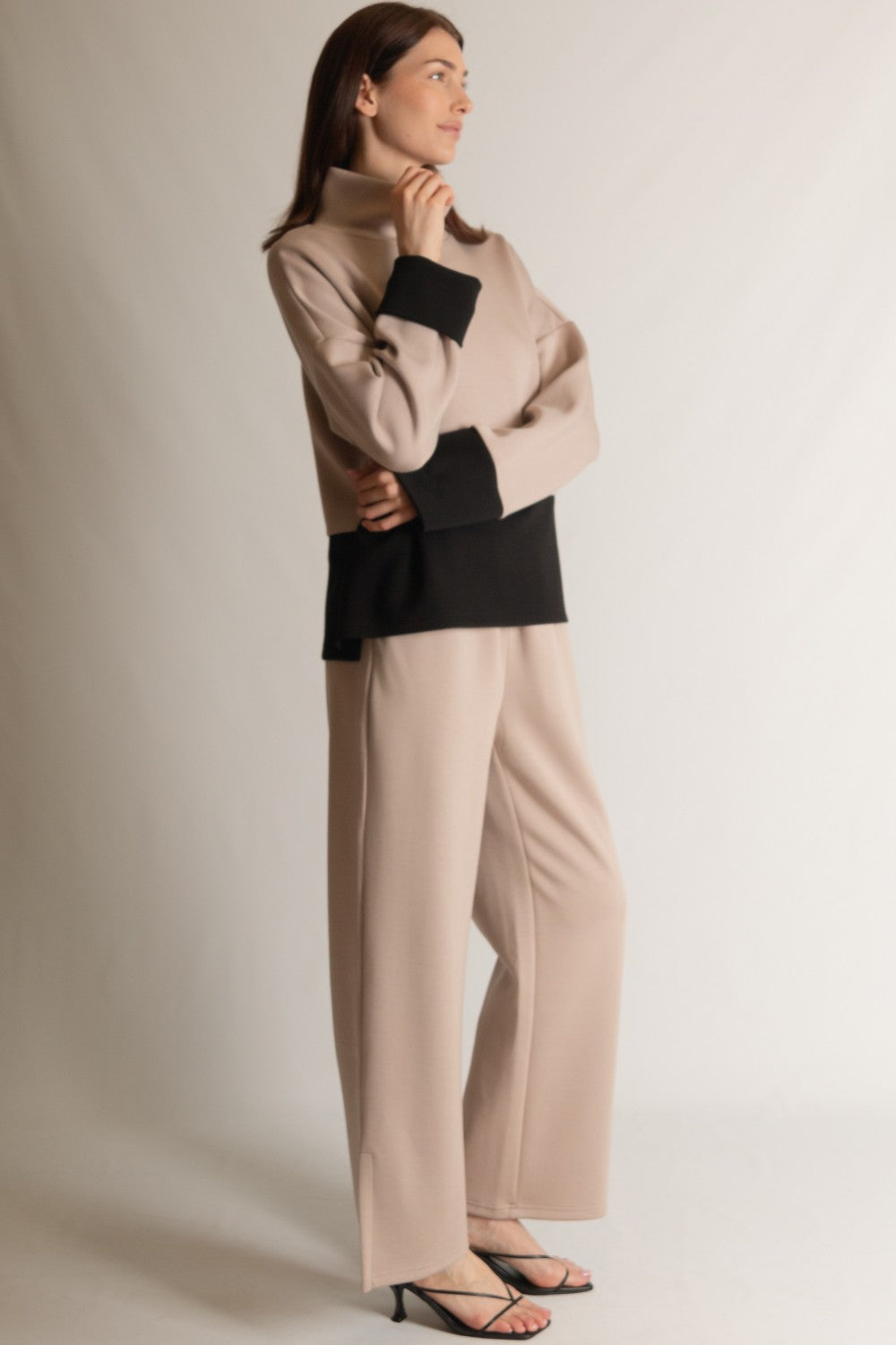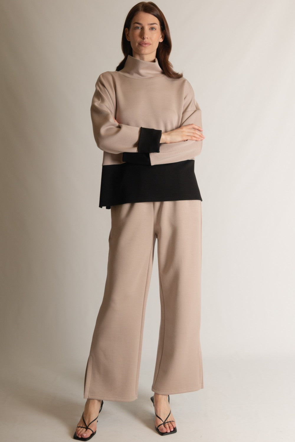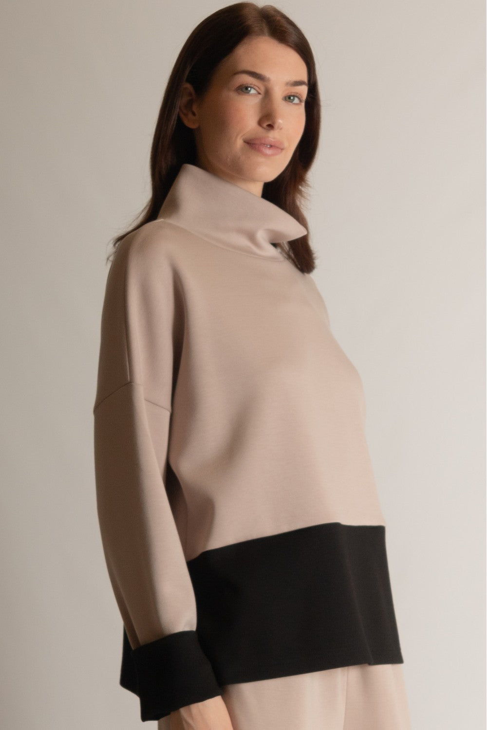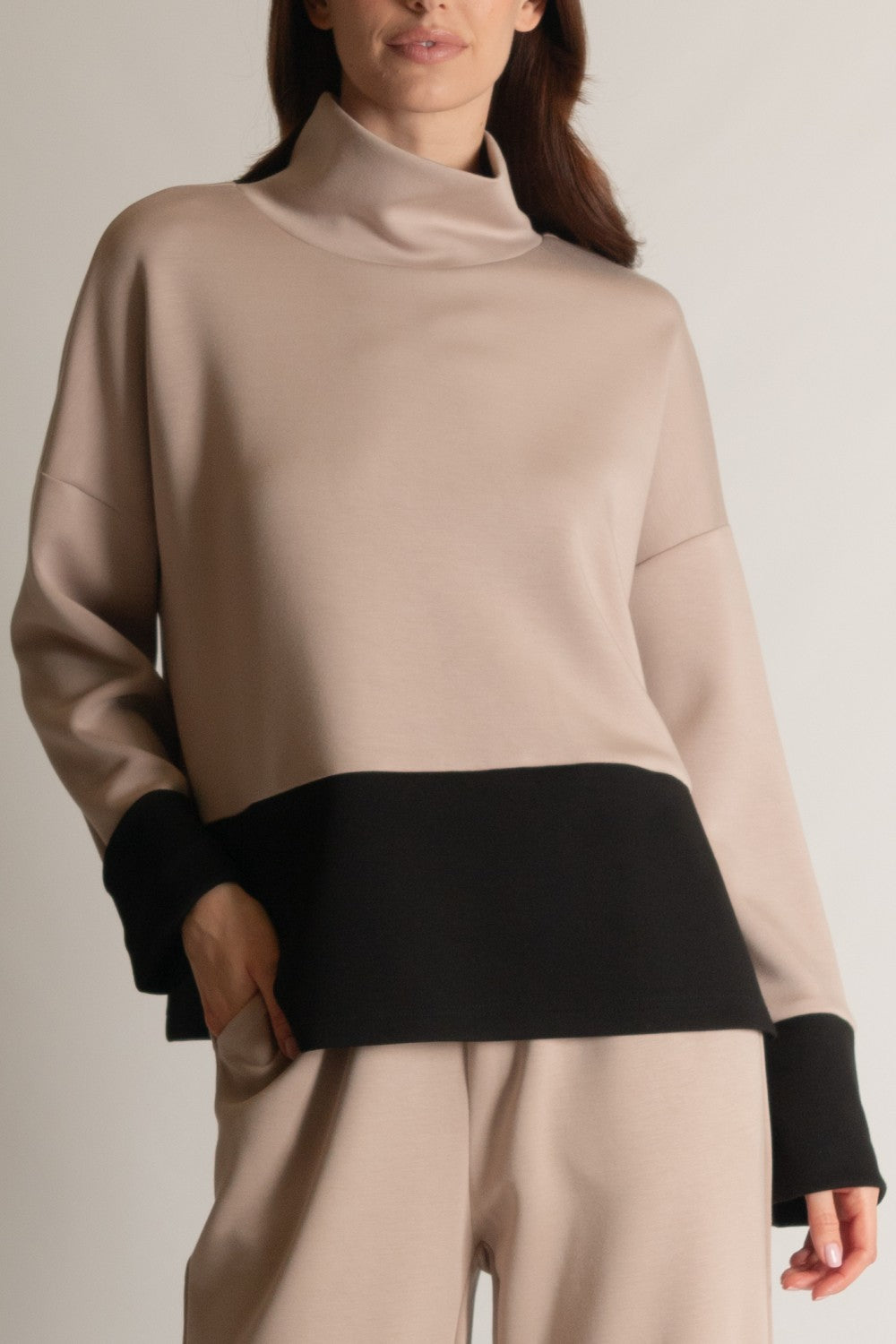 Color Block Long Sleeve Mock Neck Top