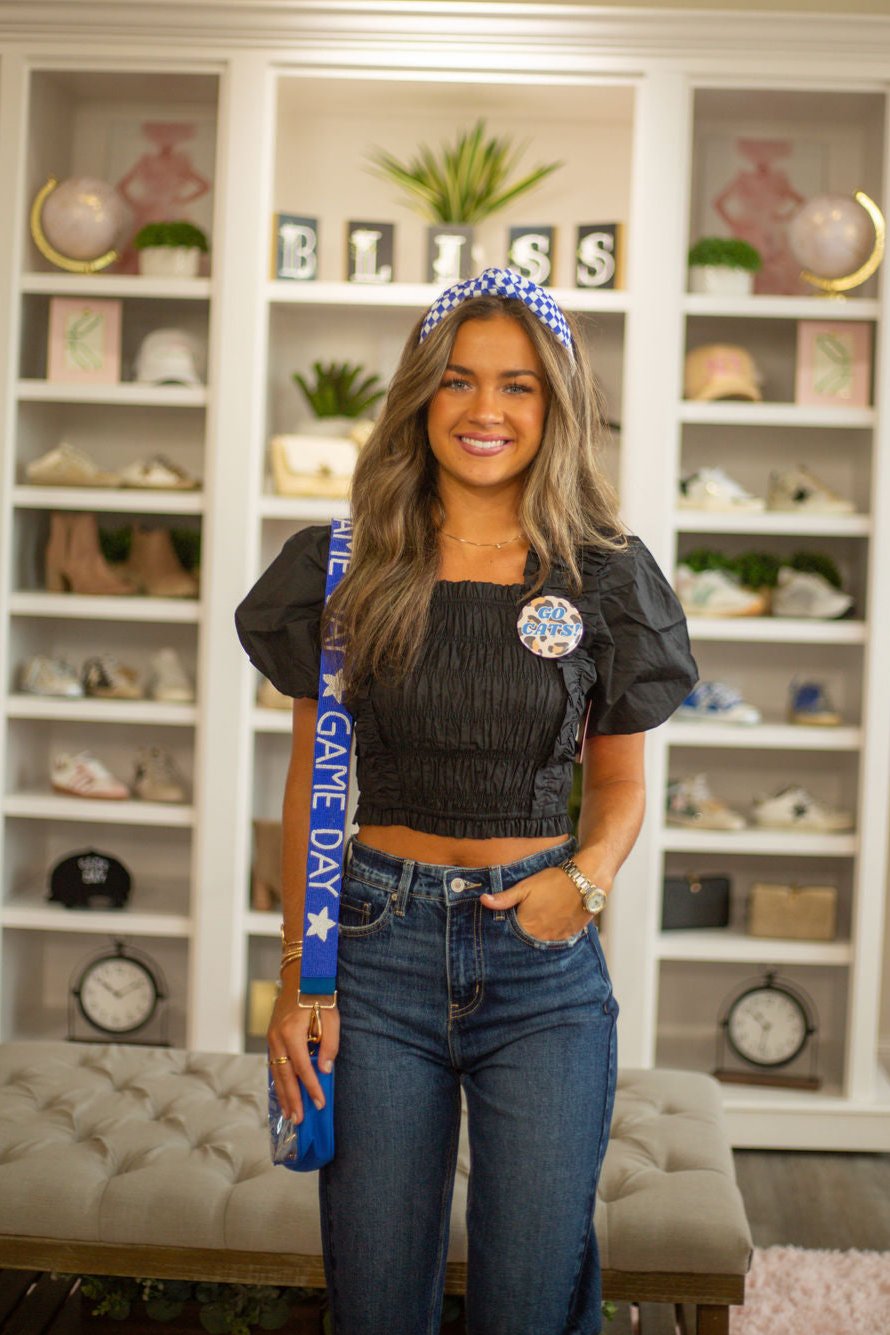Introducing the Tandy Puff Sleeve Top, designed by Buddy Love. Its unique puff sleeves add a touch of retro flair to any outfit. Made with high-quality materials and expert craftsmanship, this top is perfect for the fashion-forward individual. Bring some fun and style to your wardrobe with the Tandy Puff Sleeve Top.