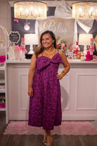 Be the belle of the ball in this Violet Jacquard Bow Dress from Meet me in Santorini. With its unique jacquard fabric and playful bow accent, you'll stand out in any crowd. Whether you're strolling through the streets of Santorini or hitting the dance floor, this dress will make you feel like a true fashionista. (Cue the twirling and posing!)