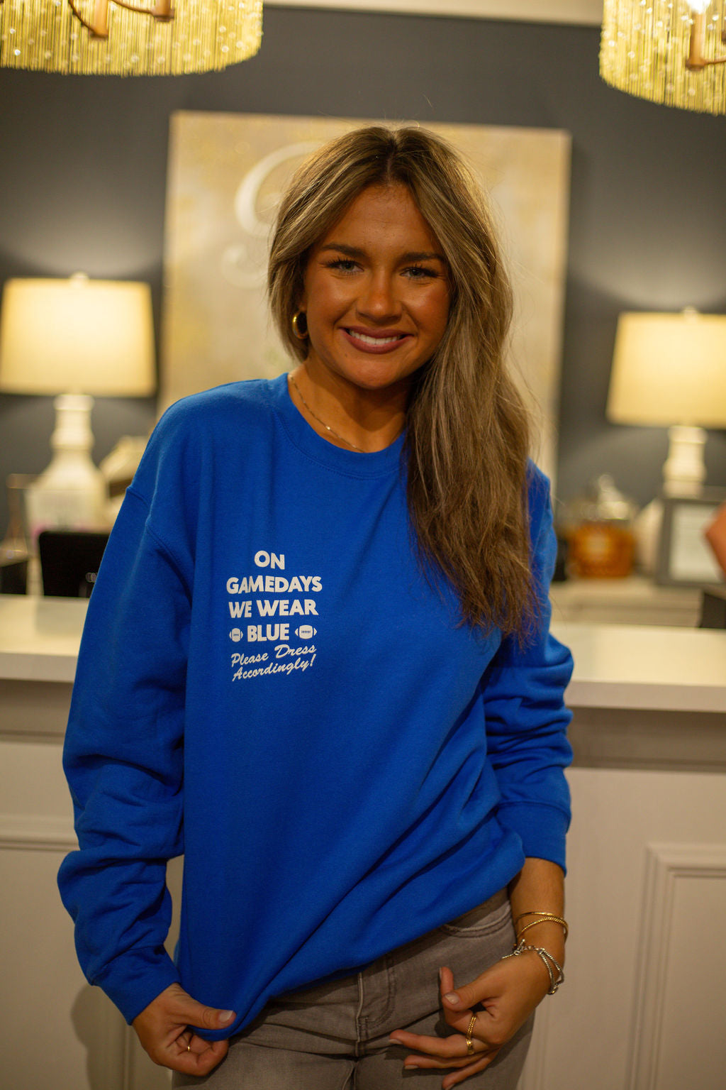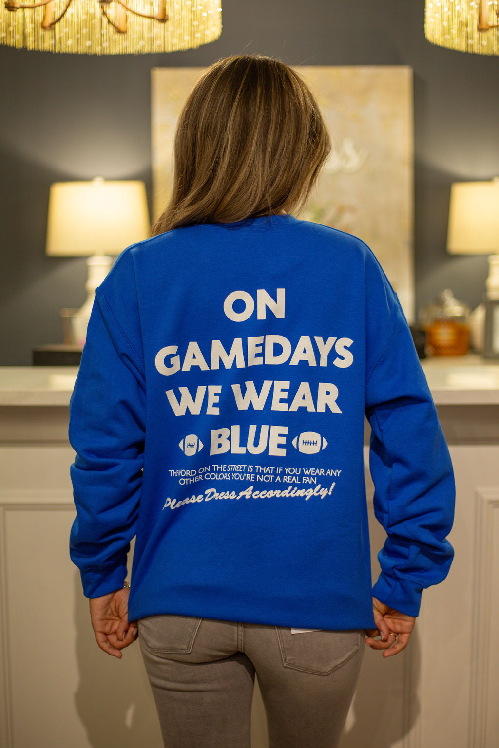 GAMEDAYS WE WEAR BLUE SWEATSHIRT (FRONT + BACK)
