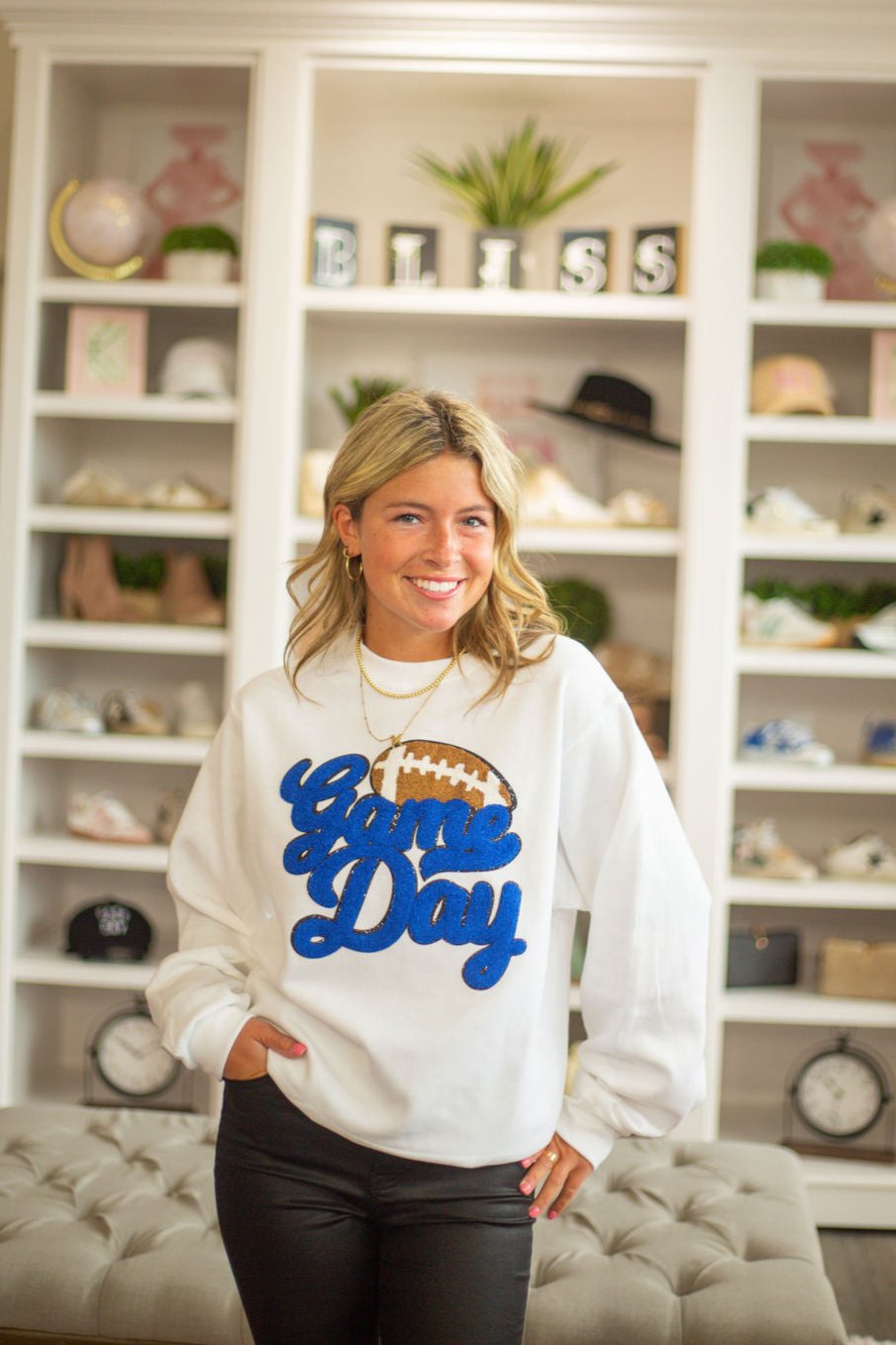 Sweatshirt w/ Royal Blue Game Day Football Chenille