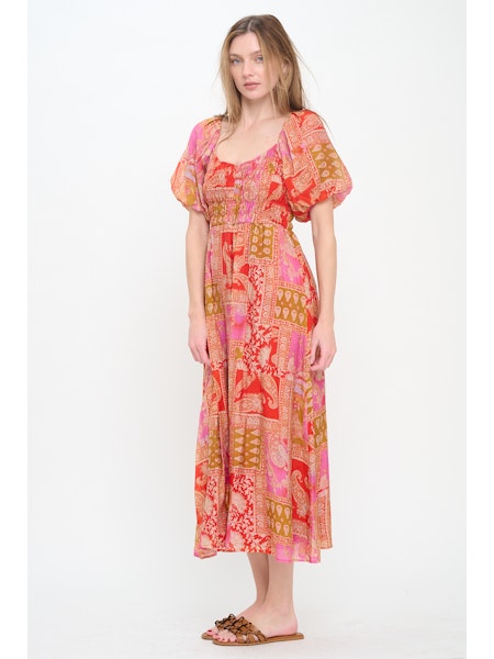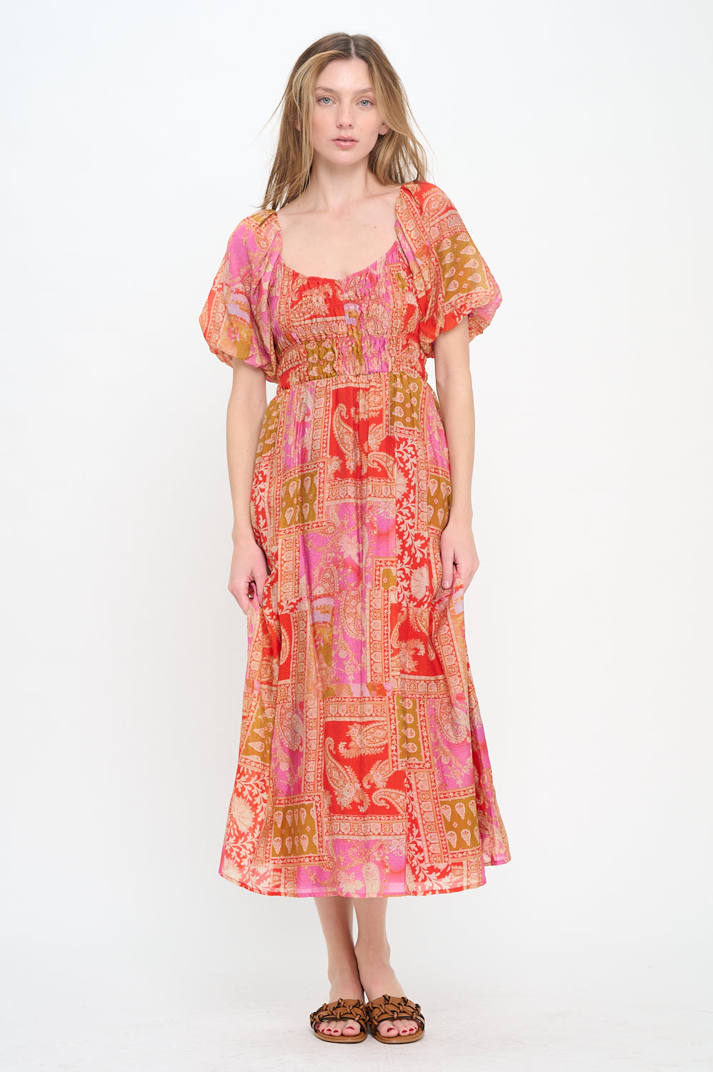 Mediterranean Majesty Puff Sleeves Maxi dress