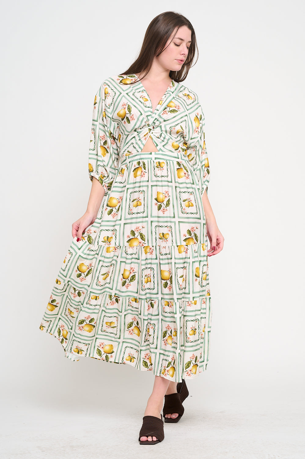 Lemon Grove Delight 3/4 Sleeve Maxi Dress