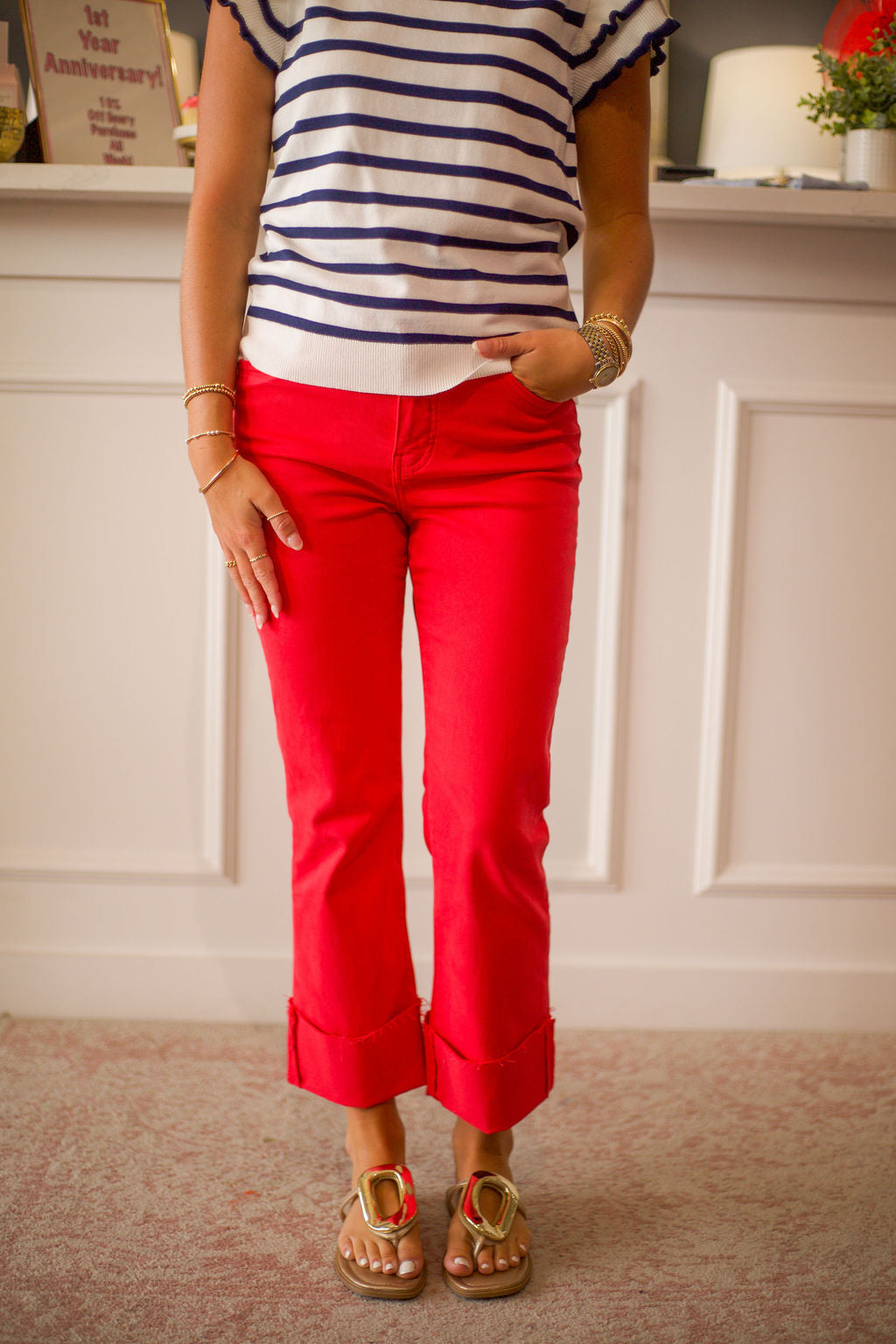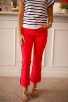 Introducing the Kelsey High Rise FAB AB Ankle Flare jeans - so soft and comfy, you'll never want to take them off! The raw hem allows you to customize the length to your liking. Choose from a variety of colors for a stylish look. (FAB AB = flattering and booty-boosting, just a bonus!) Model has the denim cuffed (they do not come that way)they are a raw hem. So cute!!!
