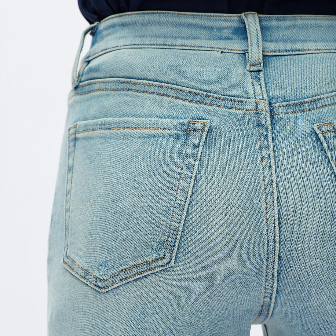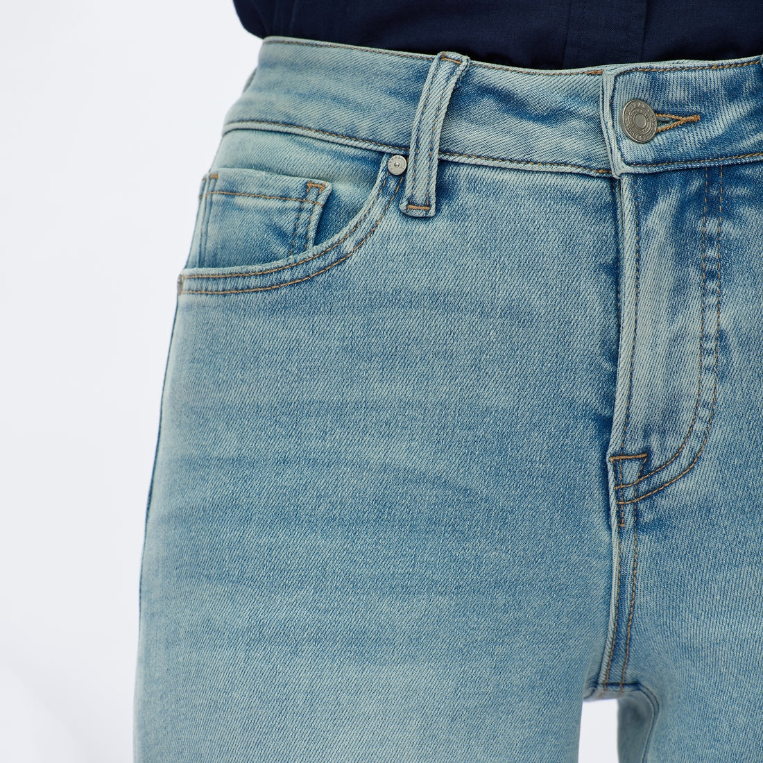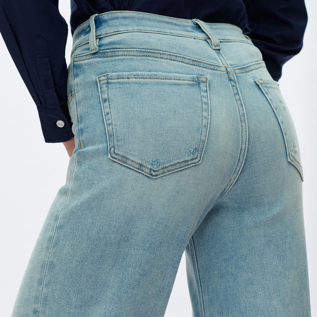 These mid-rise wide leg jeans are crafted from super stretch denim that provides both comfort and flexibility. Designed with a flattering silhouette, they feature classic five-pocket styling, grinding at the pocket openings, a zip fly closure, and a clean finished hem. Subtle washing details add depth and character, making them a versatile staple for everyday wear.