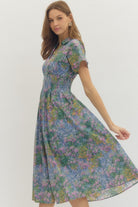 Floral Print Short Sleeve Midi Dress