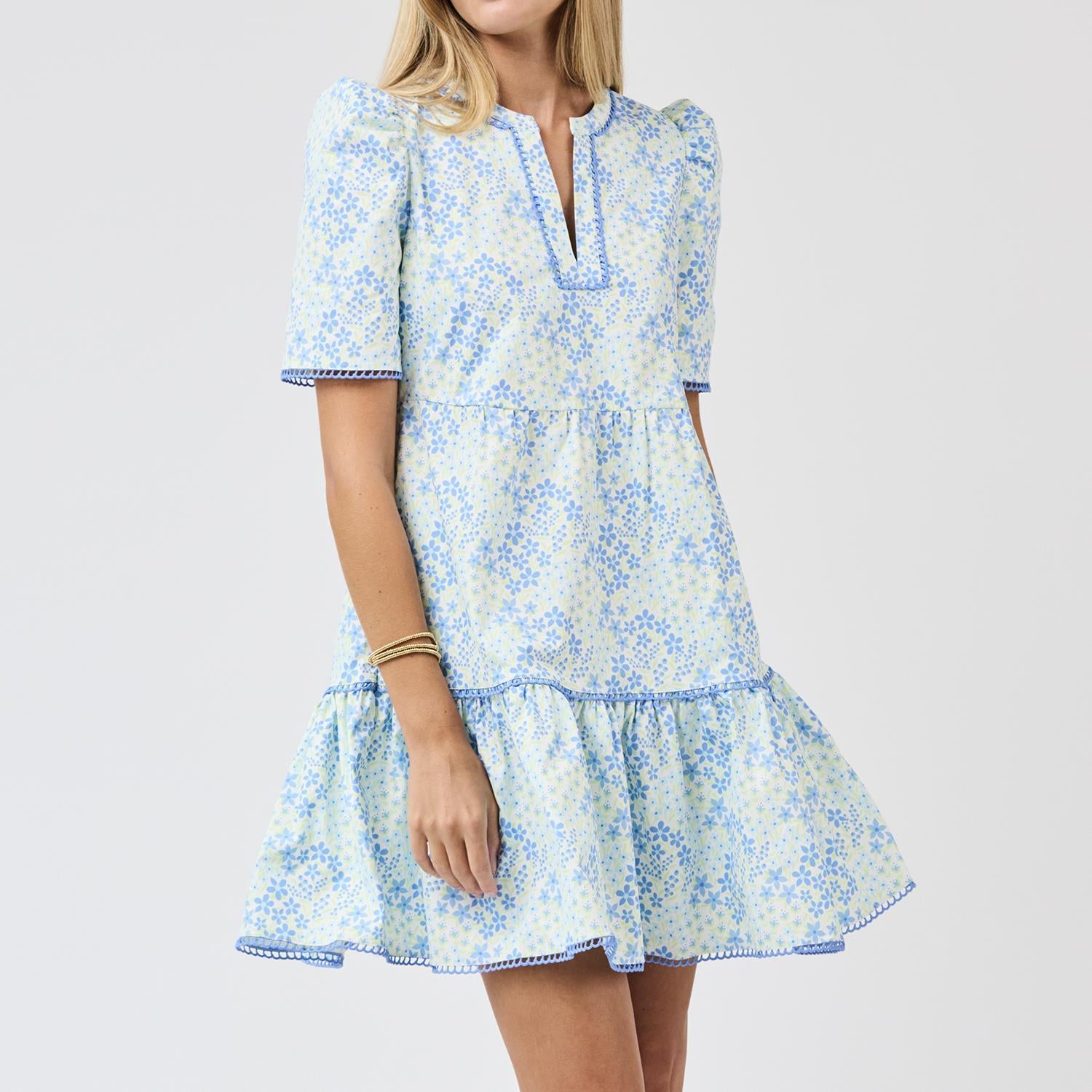 Step into a world of whimsy with the Adelyn Larkspur Fields Blue dress. Its breezy silhouette and charming blue hues bring a playful touch to any day. Perfect for twirling through sunny fields or brightening up your everyday adventures, this dress combines comfort with a splash of joyful style. Let your spirit bloom in Adelyn!