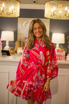 Get ready to turn heads with our Nylah Printed Mini Dress with Godets! With its intricate detailing and stylish design, this dress will make you stand out in any room. (Warning: may cause envy in others.)