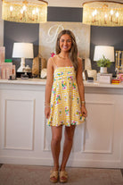 Get ready to feel fresh and fabulous in our Santorini Citrus Short Dress. With its playful citrus print and lightweight fabric, you'll be the life of every summer party. Embrace your fun-loving side in this quirky and stylish dress.