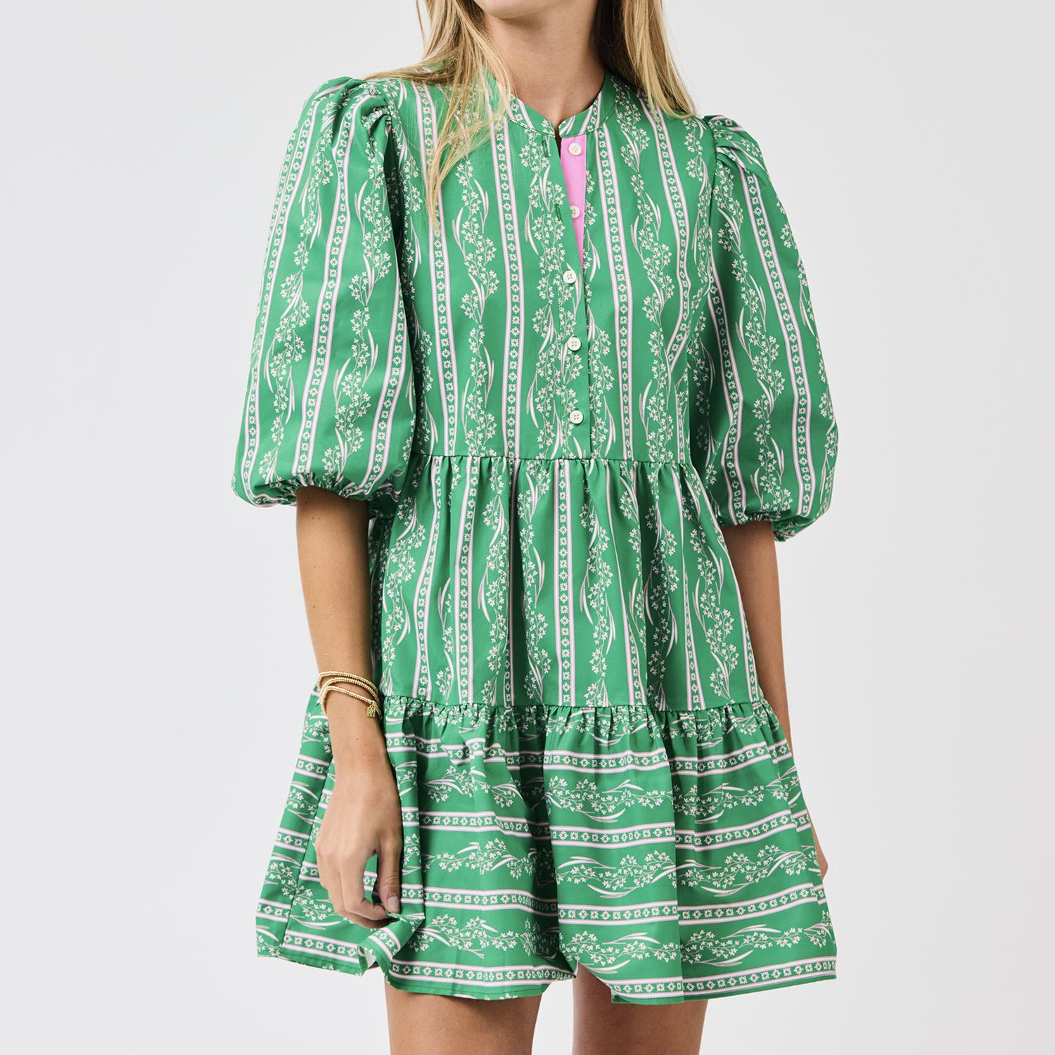 Windowpane Jacquard Puff Sleeve Midi Dress