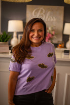 Get ready to sparkle this spooky season with our Sequin Halloween Bat Patched Graphic T-Shirt! Featuring a shimmering bat patch, this playful tee adds festive fun and a touch of glam to your Halloween look. Comfortable and eye-catching, it’s perfect for parties or casual days when you want to show off your spooky style with a twist.