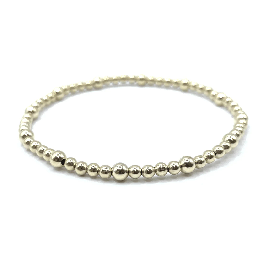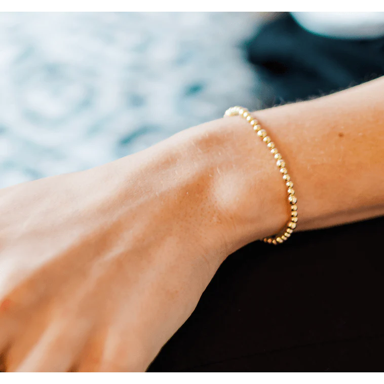 Discover the perfect balance of style and durability with our 3mm + 4mm 14K Gold Filled Karma Waterproof Bracelet. Made with a mix of 14k gold-filled beads, this stretch bracelet can be worn alone or layered for a more dynamic look. Part of our Erin Gray waterproof collection, it's a must-have for any fashion-forward individual.