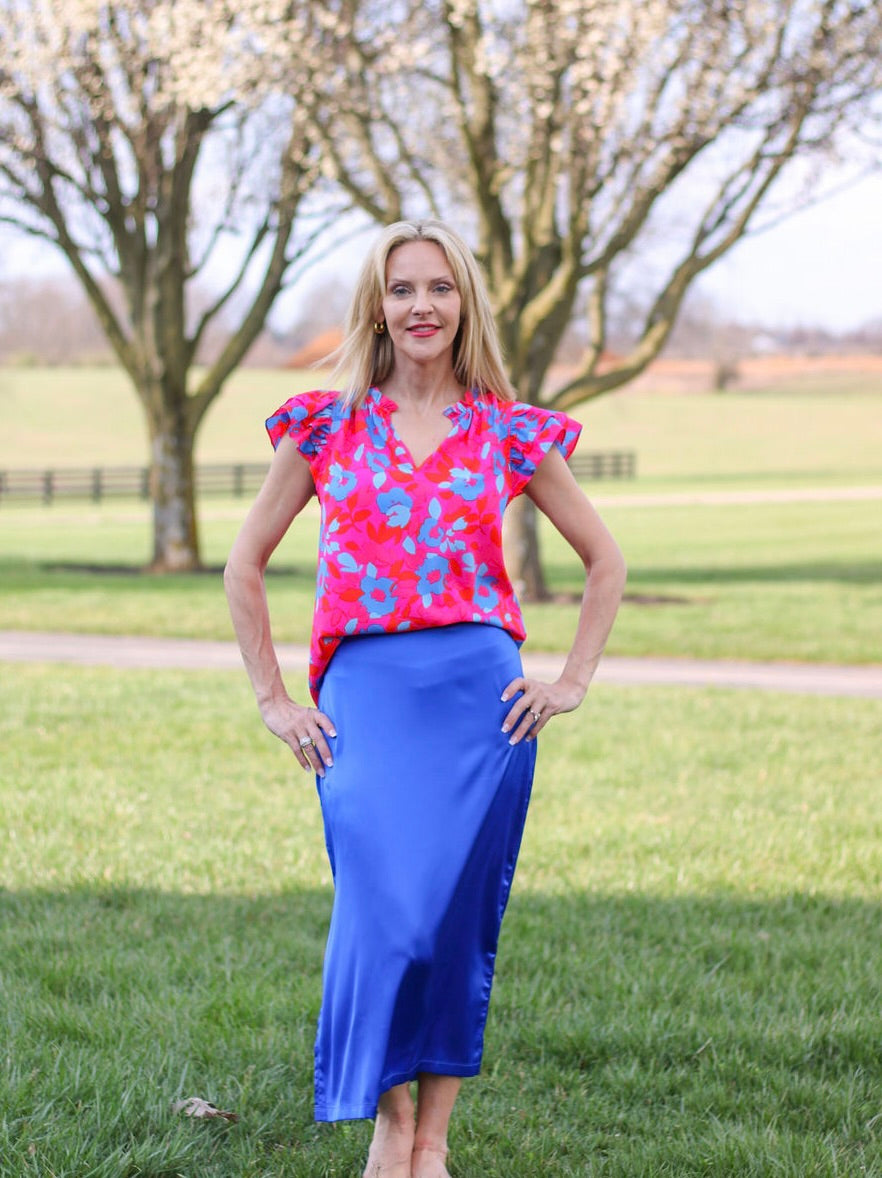 Indulge in tropical vibes with the Lusma Floral Bellissima Ruffle Sleeve Top! Featuring a split neckline and playful ruffle cap sleeves, this relaxed fit top is perfect for any occasion. Style it with high waisted shorts or wear it out with pants for a fun, classic look.