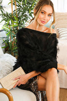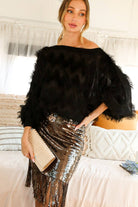 This chic blouse is designed with a stylish boat neckline and playful fringe accents that bring texture and movement to your look. Its relaxed silhouette makes it versatile, pairing effortlessly with skirts, trousers, or statement bottoms. Perfect for evenings out or special occasions, it adds a bold yet elegant touch to any outfit.