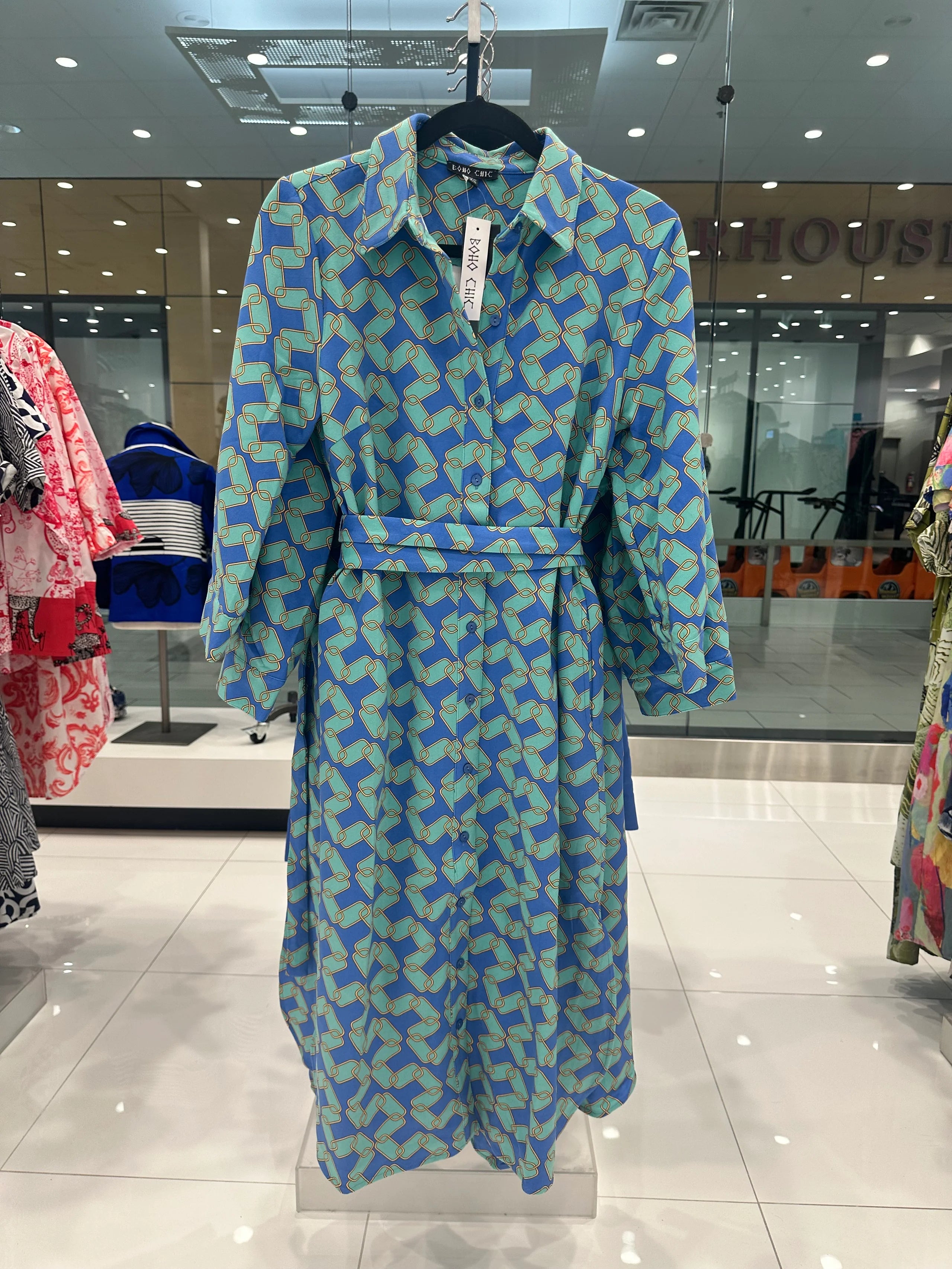 Step into bohemian bliss with the Royal/Emerald Long Dress, a vibrant blend of rich colors that dances with every step. Its optional belt lets you switch up your silhouette, while pairing it with an oversized handbag and wedges amps up your free-spirited, polished vibe. Perfect for turning heads and embracing playful elegance wherever you go.