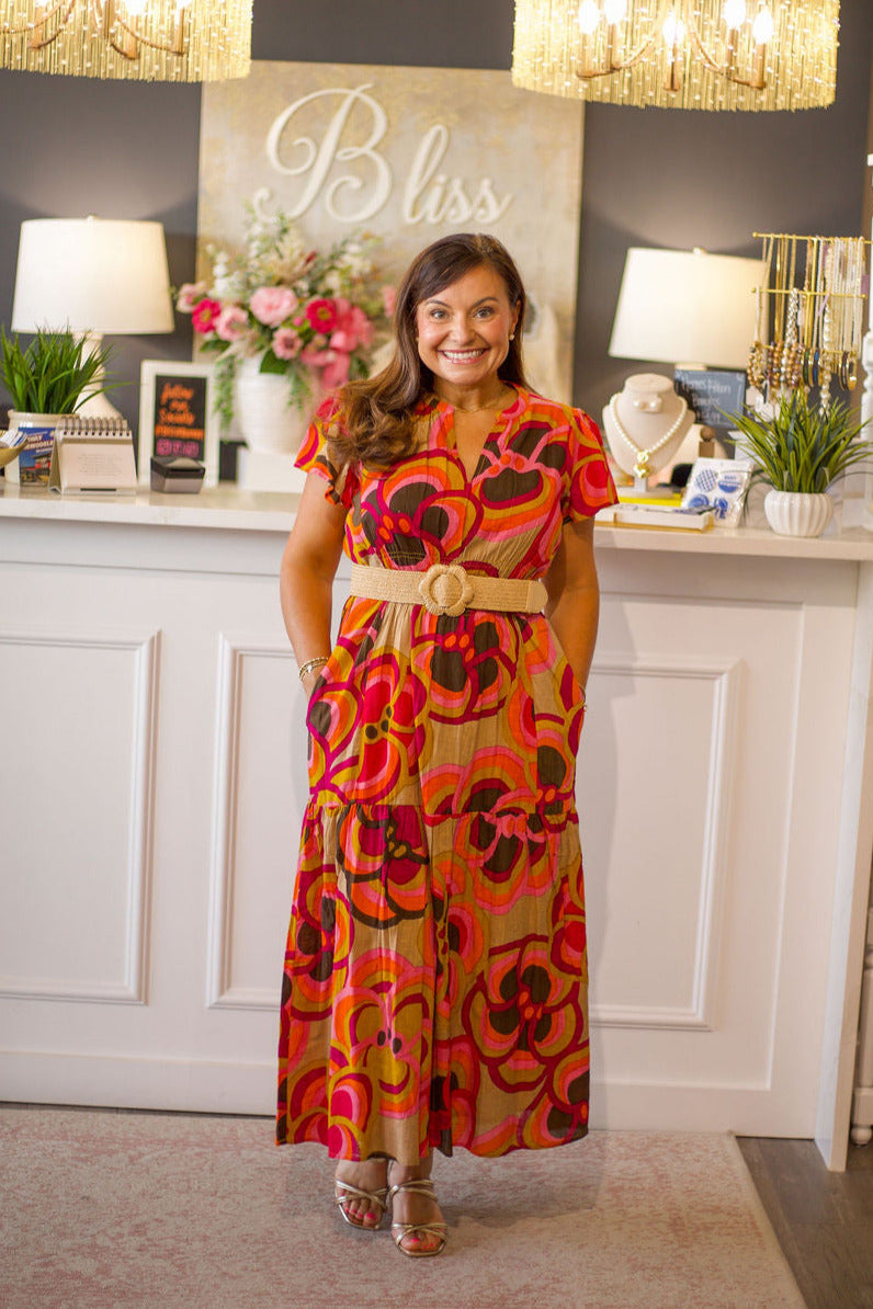 Embrace vibrant sophistication with the Bold Floral Midi Dress, a true statement piece designed to captivate. This stunning dress features an eye-catching array of large, dynamic floral patterns that bloom across the fabric, creating an undeniably artistic and lively aesthetic. With its flattering midi length and comfortable silhouette, it's the perfect choice for those who dare to stand out and infuse their wardrobe with joyous color and unforgettable style.