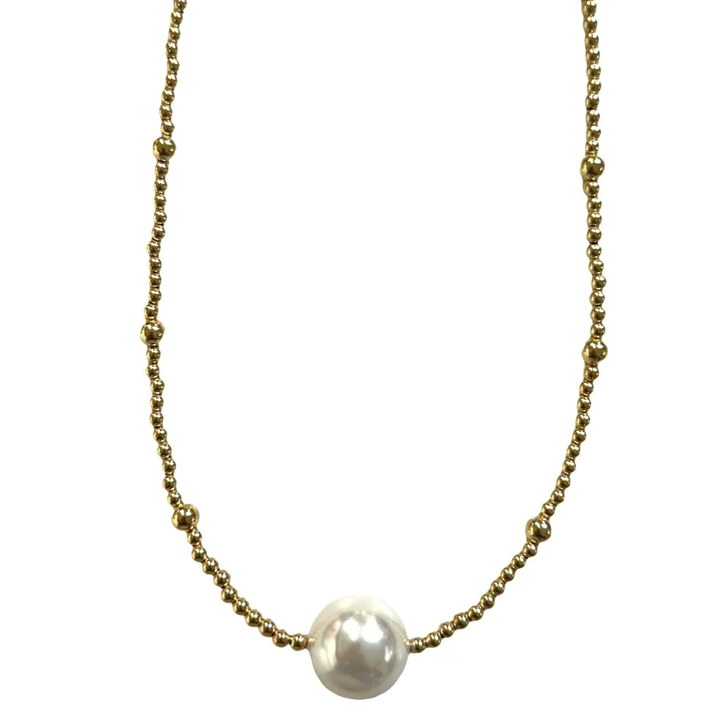 Elevate your style with the Allison Avery Beaded Lola Chain. Crafted with premium materials and available in 14K Gold Filled or Sterling Silver, this delicate beaded chain with a large pearl adds a touch of sophistication to any outfit. Its durability and timeless design make it a must-have accessory for any occasion.