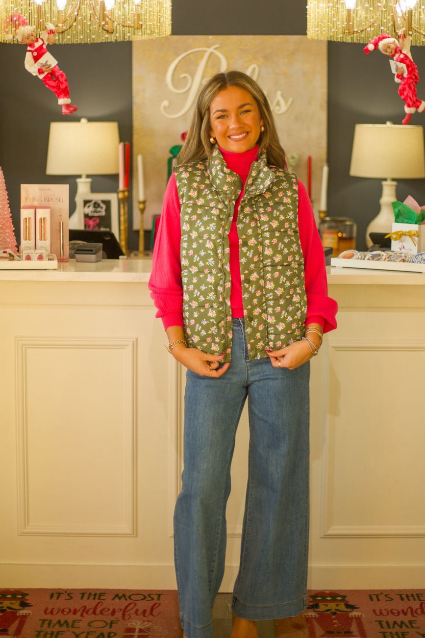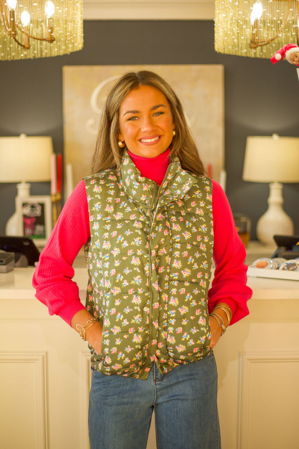 Add a pop of fun to your winter wardrobe with our Floral Print Front Zipper Puffer Vest. This playful vest not only features a trendy floral print, but also has a convenient front zipper for easy wear. Stay warm and stylish this season!