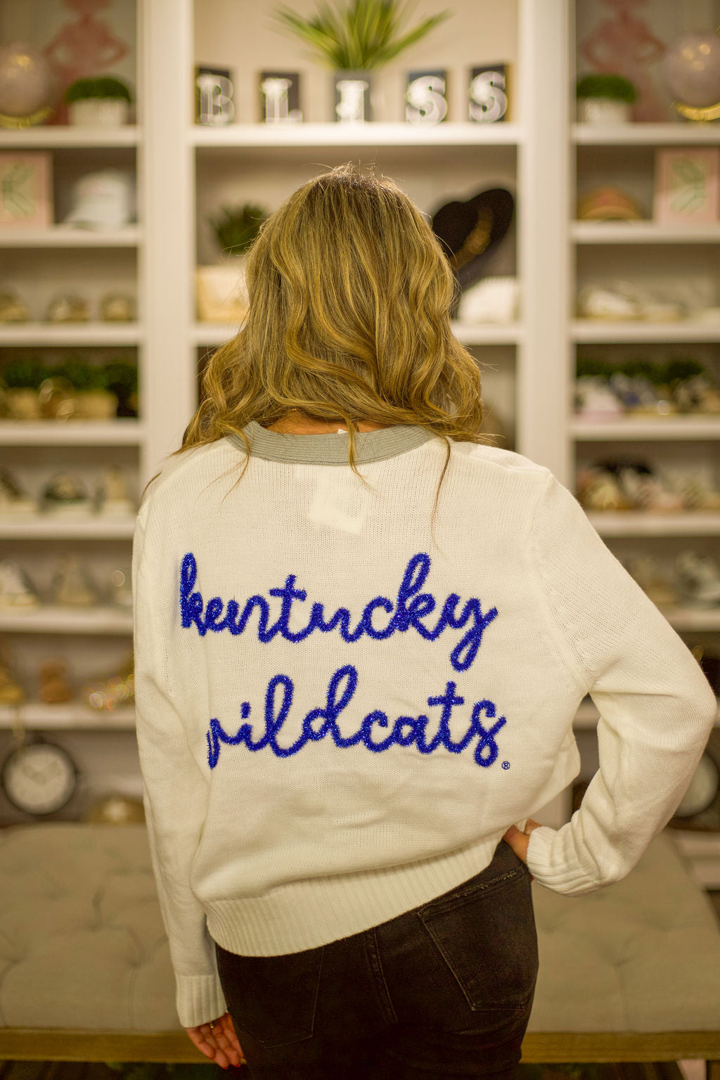 Be the coolest Wildcat fan with this glittery script cardigan. Show off your team pride in a fun and quirky way. Perfect for game days or everyday wear.