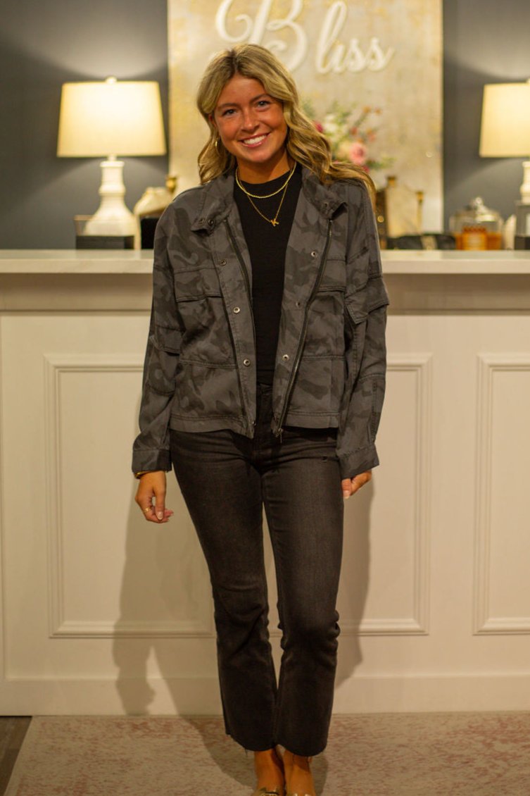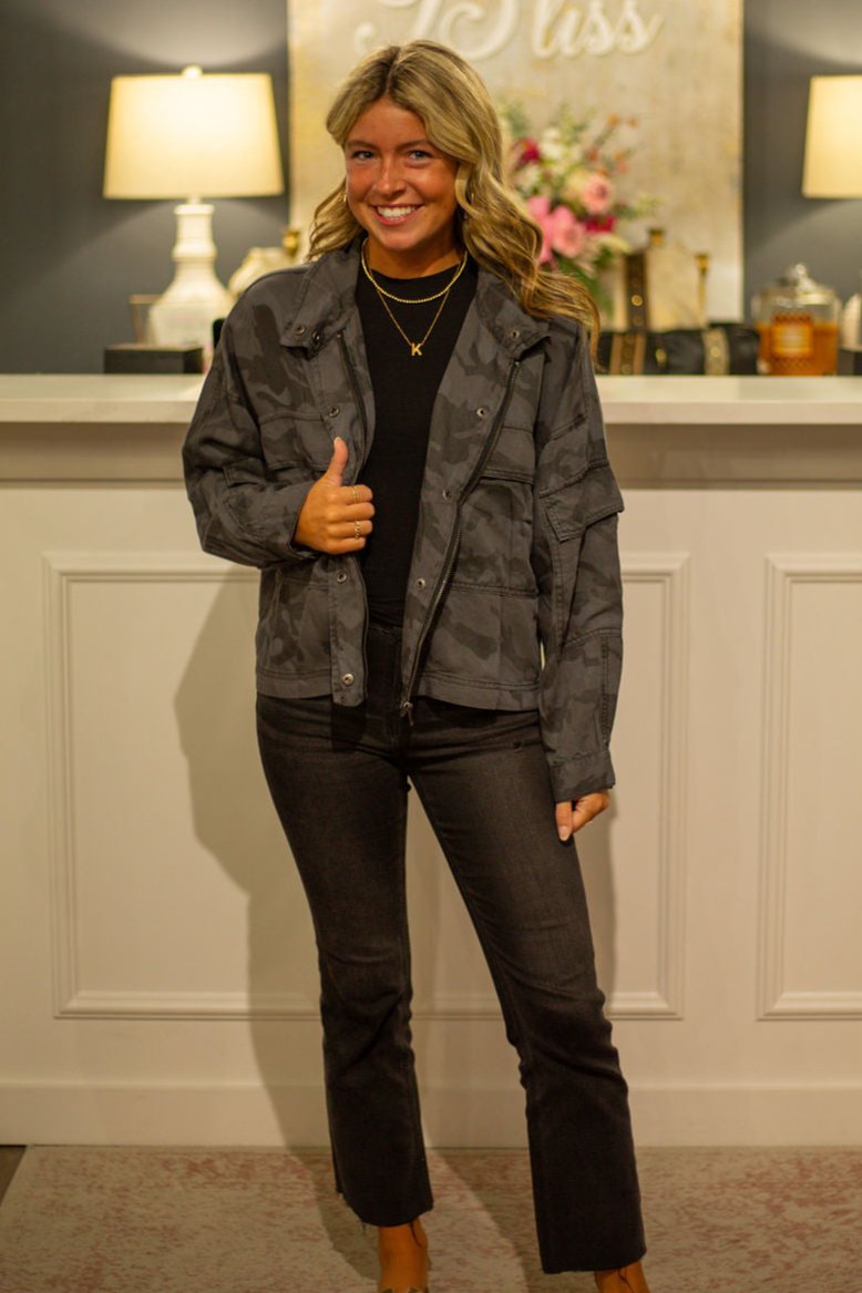 Join the ranks of style with this Vintage Havana Jacket. Designed by Vintage Havanan, this grey camo jacket adds a touch of edgy, cool vibes to your wardrobe. Stand out from the crowd in this unique, vintage-inspired piece. (Only available for the most fashion-forward individuals.)