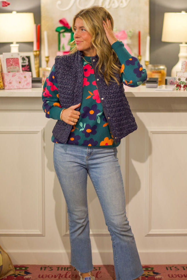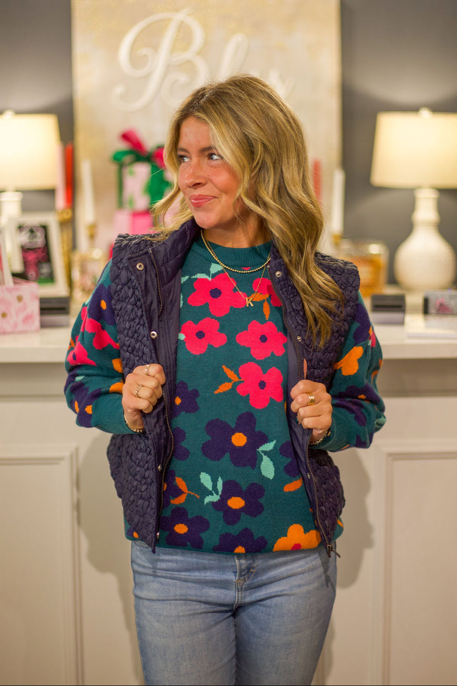 Sleeveless Quilted Front Full Zip Sweater Vest