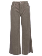 Add a stylish twist to your everyday denim with these mid-rise ankle flare pants, designed with subtle inset leg detailing for a flattering silhouette. The soft corduroy texture gives them a cozy, vintage-inspired feel, while the cropped flare adds a modern edge. Perfect for pairing with everything from boots to sneakers, these versatile pants offer comfort, structure, and effortless style.