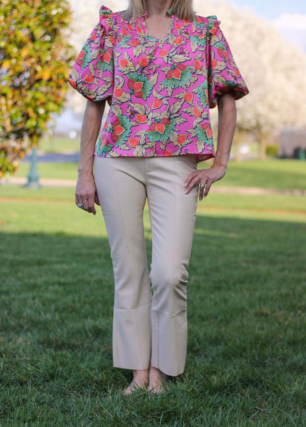 Amy Crop Straight-Waistband Double Btn Roll Up