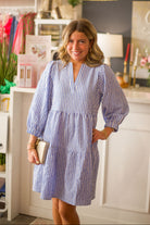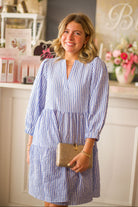 Get ready to turn heads in the Dress Cooper Lined Up Light Blue! This stunning dress not only features a lined design for a sleek look, but also offers a playful and fun touch with its light blue color. Perfect for any occasion, this dress is sure to make you stand out and feel confident.