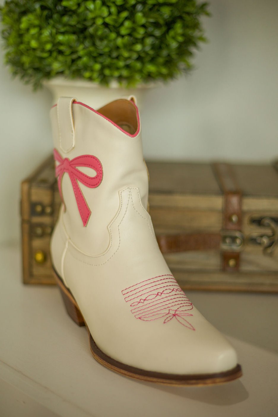 The Minnie Pearl adds a pop of pink to your ensemble with its scalloped collar and pull straps that make it easy to slip on and go. The pink trim creates a flattering silhouette, making this shorty boot a must-have.
