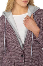 This versatile blazer blends polished tailoring with casual ease, featuring a removable hooded insert for a layered look. Designed with a relaxed boyfriend fit, it pairs effortlessly with both denim and dressier pieces. Perfect for workdays or weekends, it offers two styles in one, making it a modern wardrobe essential.