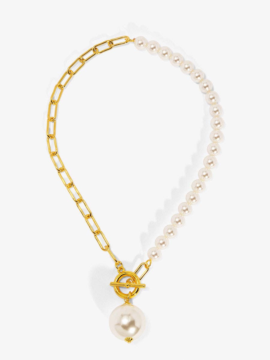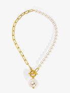 This Chain and Pearl Pendant Necklace beautifully blends classic and modern style with its half-pearl, half-chain design. Featuring a lustrous faux pearl pendant and a sleek toggle closure, it’s the perfect balance of elegance and edge. Scratch-resistant and hypoallergenic for everyday wear, this piece adds timeless charm to any outfit.
