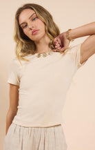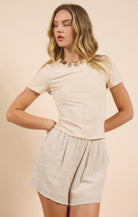 Elevate your everyday style with this effortlessly chic short sleeve knit tee by Sadie and Sage. Designed with a flattering slim fit and soft ribbed texture, it’s perfect for pairing with everything from tailored trousers to your favorite denim. The lightweight knit fabric offers comfort and breathability, making it an ideal staple for year-round wear. Finished with a classic crew neckline and subtle stretch for all-day ease.