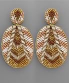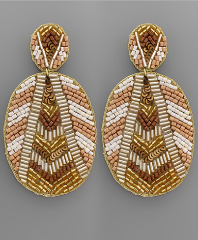 Add a touch of sparkle and fun to your look with these Gold Chevron Pattern Beaded Oval Earrings. Their unique chevron design and delicate beading create a playful vibe that’s perfect for dressing up any outfit. Lightweight and eye-catching, these earrings bring a cheerful charm to your accessory collection.