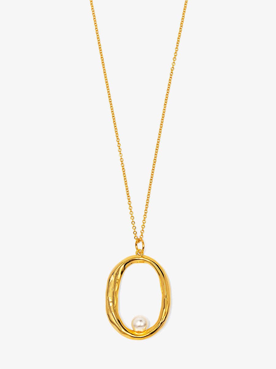This elegant necklace combines modern artistry with timeless charm, featuring a hammered oval pendant that frames a delicate pearl accent. Suspended from a fine chain, it adds a touch of sophistication and uniqueness to any look. Perfect for both everyday wear and special occasions, it’s a versatile piece that elevates your jewelry collection.