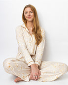Soft, breathable, and effortlessly elegant, this long sleeve button-up sleep shirt brings a touch of charm to your bedtime routine. The delicate floral print and contrast piping create a timeless look, while the lightweight fabric ensures all-night comfort. Finished with a chest pocket and relaxed fit, it's perfect for slow mornings, cozy evenings, and everything in between. Designed for lounging in total comfort, these soft sleep pants feature a relaxed fit and a flowy silhouette that moves with you. The lightweight fabric feels gentle against the skin, while the adjustable drawstring waistband offers a personalized fit. Delicate floral detailing adds a touch of elegance, making these pants just as pretty as they are practical—perfect for winding down or waking up slow.