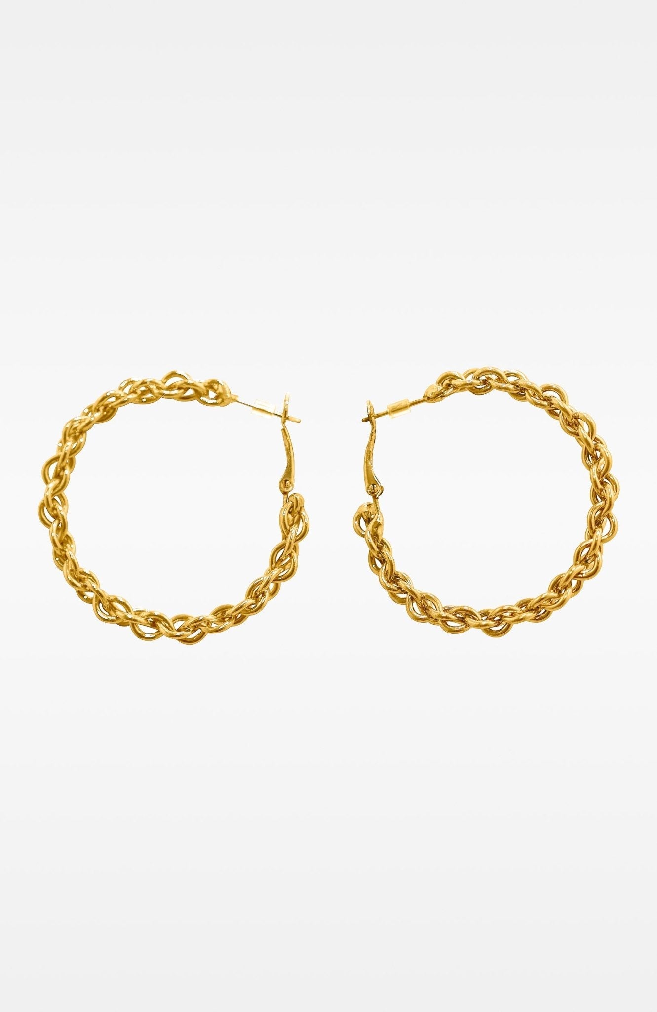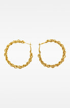 These bold yet timeless rope chain hoop earrings feature a 2" round design that adds a statement touch to any outfit. Crafted in a striking gold tone, they are perfect for both casual and formal wear. The latch back closure ensures a secure fit, making them both stylish and functional. Whether dressing up or down, these earrings are an essential accessory to elevate your look.